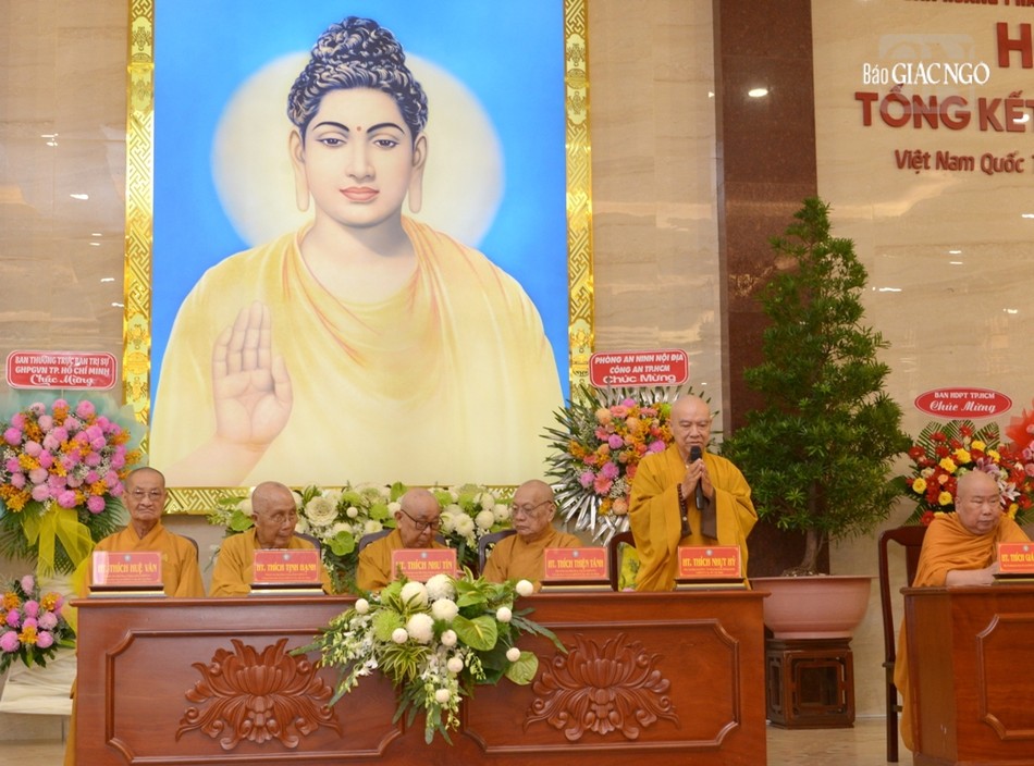 Hòa thượng nhận định nhờ sự lãnh đạo của Ban Thường trực Ban Trị sự GHPGVN TP.HCM, Ban Hoằng pháp GHPGVN đã hoàn thành nhiều hoạt động Phật sự trong năm 2023, trong đó nhấn mạnh một số thành tựu nổi bật về mặt chuyên môn hoằng pháp và các hội thi diễn giảng cho Tăng Ni trẻ.