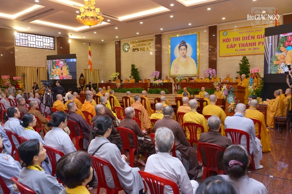 GNO - Sáng nay, 28-7, tại Trụ sở Ban Trị sự - Việt Nam Quốc Tự, diễn ra khai mạc Hội thi diễn giảng cấp Thành phố do Ban Hoằng pháp GHPGVN TP.HCM tổ chức, 28 thí sinh đạt điểm cao từ Hội thi diễn giảng cấp quận huyện TP.HCM, được tuyển chọn tham gia hội thi này.