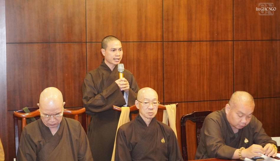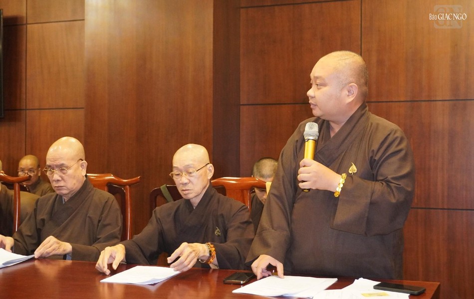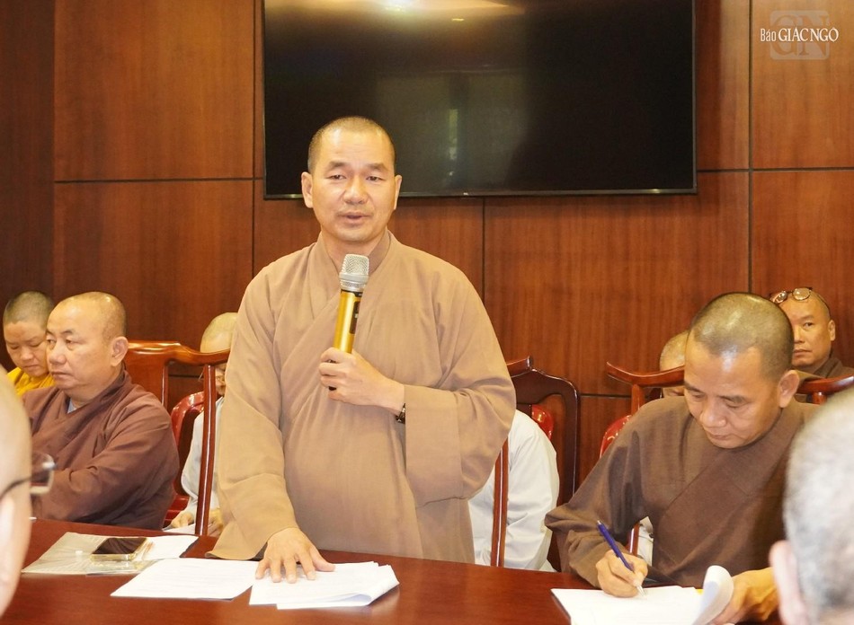 Thượng tọa Thích Giác Trí phát biểu đóng góp cho chương trình phương hướng Phật sự năm 2023