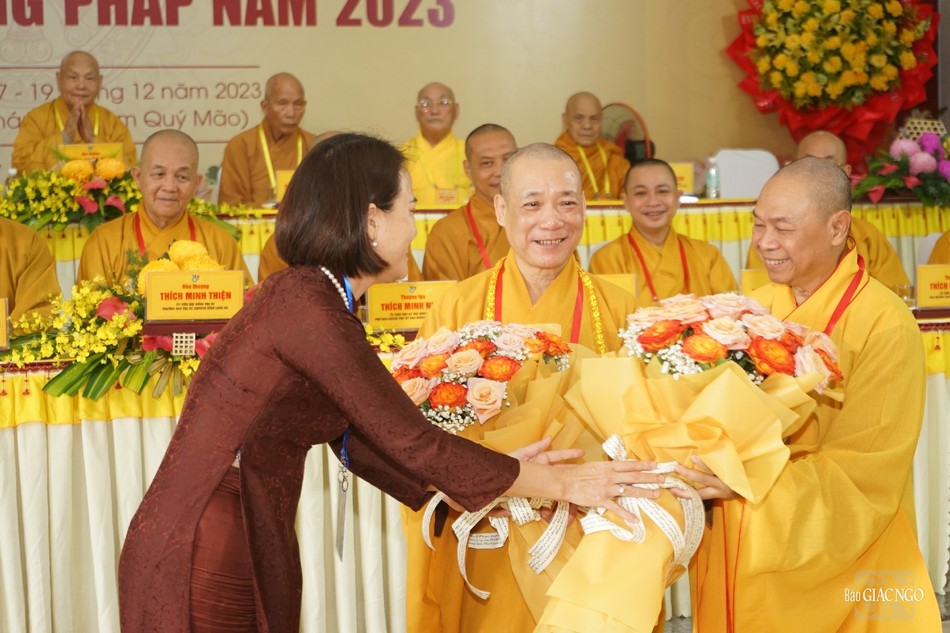 Báo cáo tóm tắt công tác tổ chức, Thượng tọa Thích Minh Nhẫn, Phó ban kiêm Chánh Thư ký Ban Hoằng pháp T.Ư cho biết tập trung các nội dung: Thượng tọa Thích Đức Thiện giới thiệu về những thành tựu của GHPGVN và một số hoạt động Phật sự trọng yếu trong thời gian tới; Hòa thượng Thích Huệ Thông trình bày về nội dung các điểm mới của tu chỉnh Hiến chương GHPGVN lần thứ VII; Hòa thượng Thích Thiện Thống trình bày về nội dung tu chỉnh Quy chế hoạt động của Ban Tăng sự T.Ư; Thượng tọa Thích Phước Nguyên trình bày về nội dung nghị quyết, phương hướng nhiệm vụ, mục tiêu hoạt động của GHPGVN ở nhiệm kỳ IX (2022-2027).