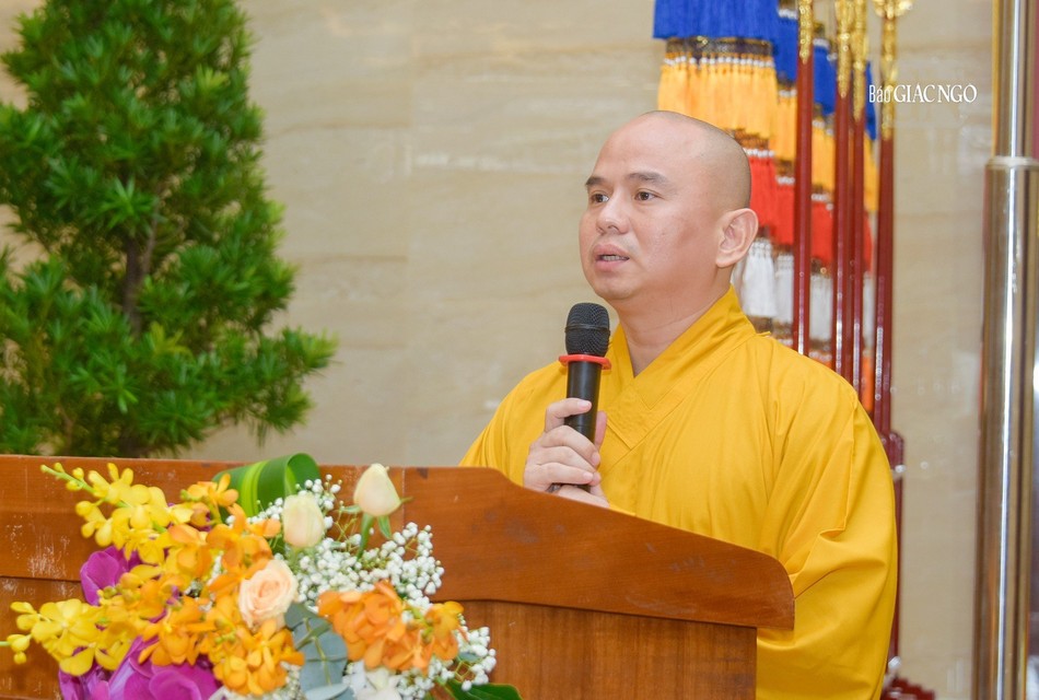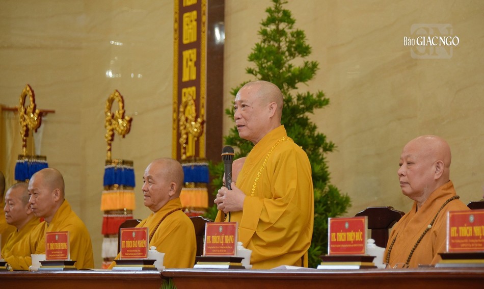 Phát biểu chào mừng, Hòa thượng Thích Lệ Trang bày tỏ niềm hoan hỷ khi Phật giáo TP.HCM được đón tiếp phái đoàn Ban Hoằng pháp T.Ư và Ban Kinh tế - Tài chánh T.Ư đến Việt Nam Quốc Tự thăm chư hành giả, cúng dường an cư và sách tấn Tăng Ni, Phật tử Thành phố phương Nam.