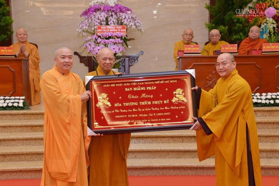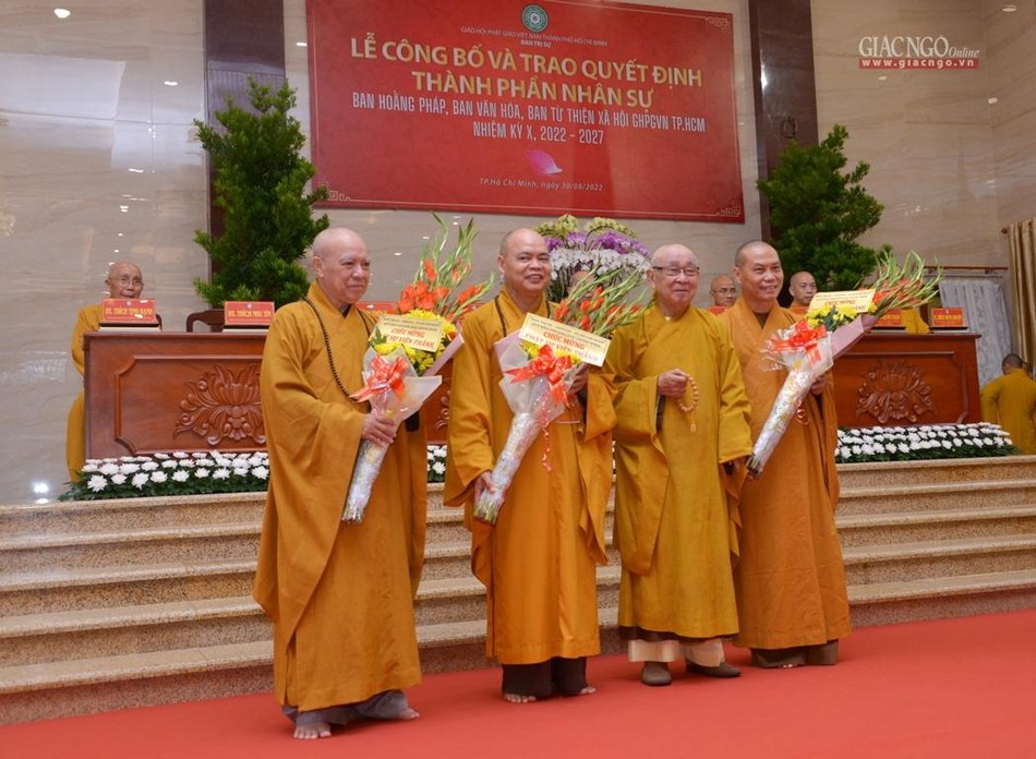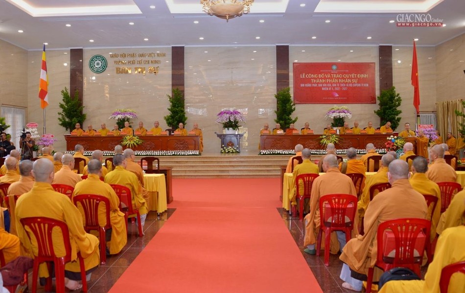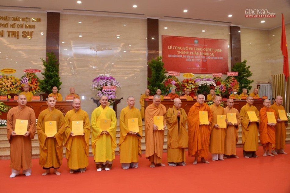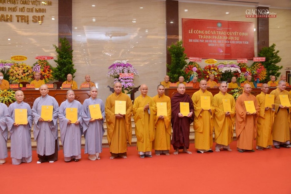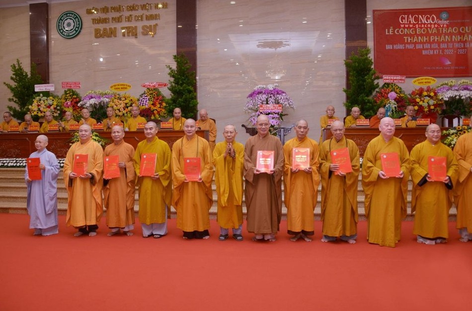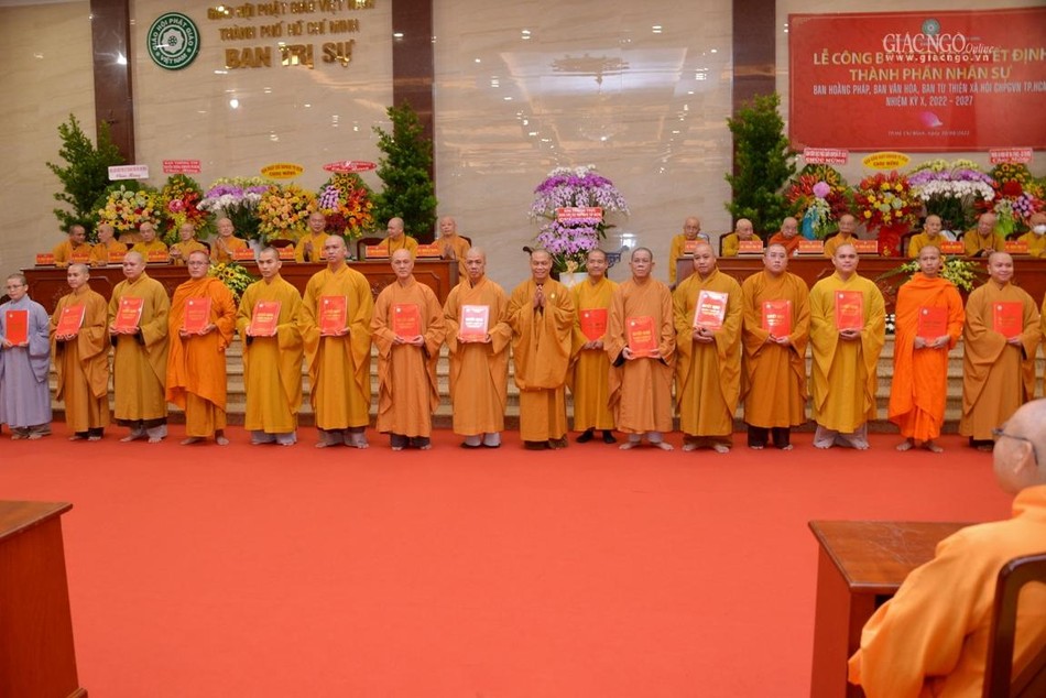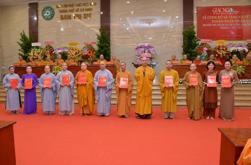 GNO - Tại trụ sở Ban Trị sự - Việt Nam Quốc Tự, chiều 30-8, Ban Hoằng pháp, Ban Văn hóa, Ban Từ thiện - Xã hội Phật giáo TP.HCM đã công bố quyết định nhân sự nhiệm kỳ X (2022-2027) do Hòa thượng Thích Lệ Trang, Trưởng ban Trị sự GHPGVN TP.HCM ấn ký.