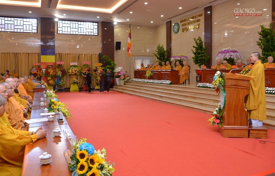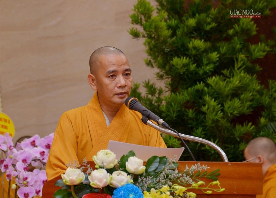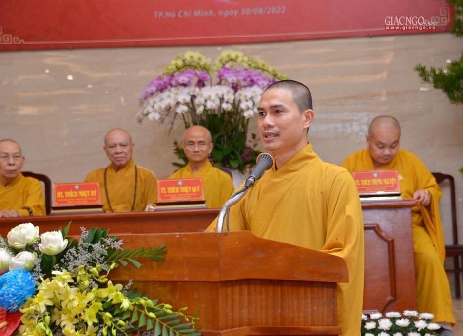 Thượng tọa Thích Trung Nguyện đọc quyết định chuẩn y nhân sự của Ban Thường trực Ban Trị sự GHPGVN TP.HCM