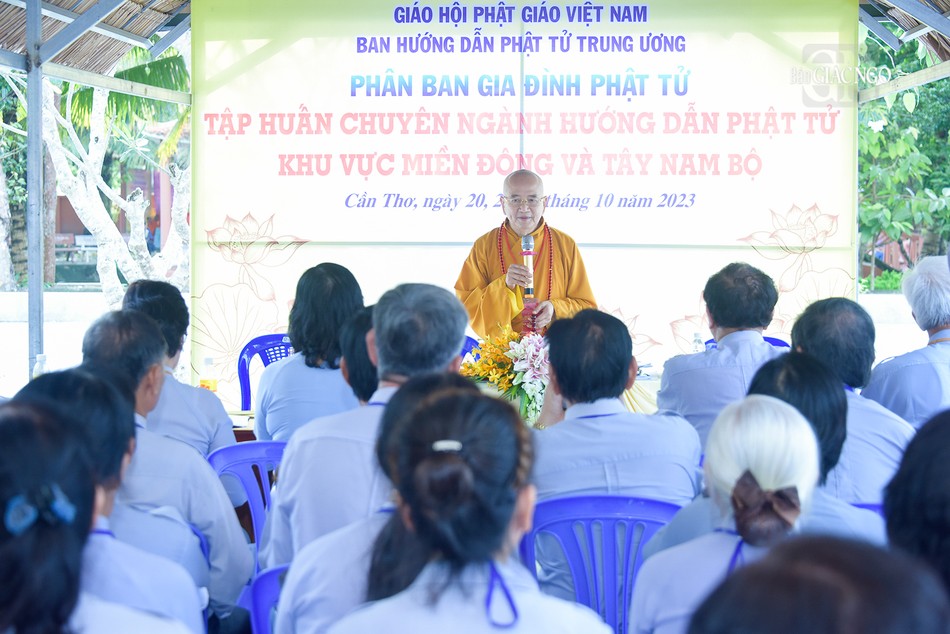 Phát biểu khai mạc tọa đàm, Hòa thượng Thích Khế Chơn, Trưởng ban Hướng dẫn Phật tử T.Ư bày tỏ niềm hoan hỷ khi tổ chức được khóa bồi dưỡng chuyên ngành, với sự tham gia của 800 đại biểu là điều không dễ dàng.