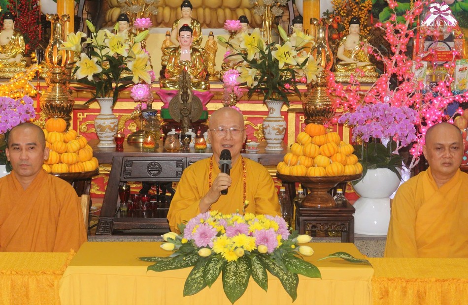 Tại đạo tràng chùa Pháp Tạng, Đại đức trụ trì Thích Trí Huệ phát biểu chào mừng và báo cáo tóm tắt sinh hoạt tu học của đạo tràng.