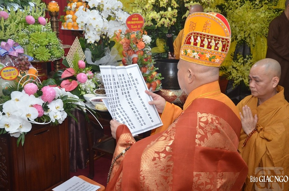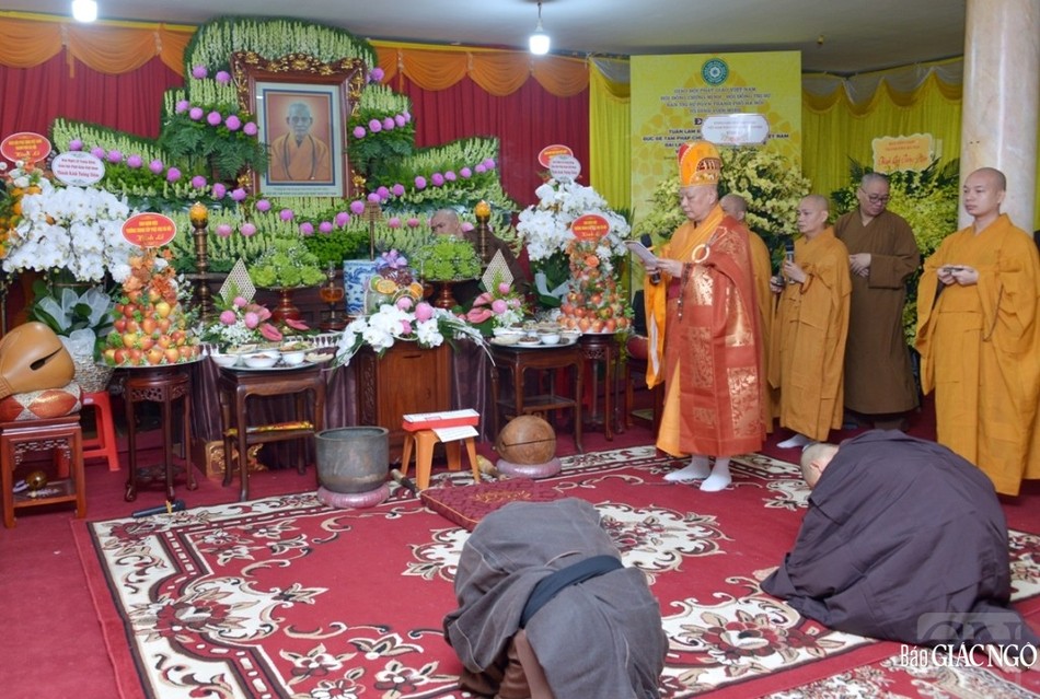 Tại Giác linh đài - nơi tôn trí hương án của Đức Đệ tam Pháp chủ, Hòa thượng sám chủ đã dâng hương cầu nguyện cũng như bạch thỉnh Giác linh Đức Đệ tam Pháp chủ giáng lâm án tiền chứng minh lễ phẩm cúng dường và hộ trì cho thiền môn hưng hiển, tổ ấn rạng ngời, Phật giáo Việt Nam mãi trường tồn, dân tộc Việt Nam mãi thịnh vượng.