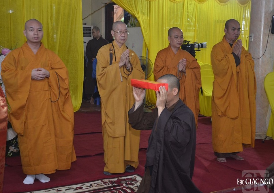 Sau lời tác bạch cầu thỉnh của Thượng tọa Thích Tiến Đạt, đại diện môn đồ pháp quyến tổ đình Viên Minh, Hòa thượng Trưởng ban Nghi lễ T.Ư và chư tôn đức đã niêm hương bạch Tổ tại tổ đường trước khi quang lâm Giác linh đài để thực hiện nghi thức cung tiến Giác linh.