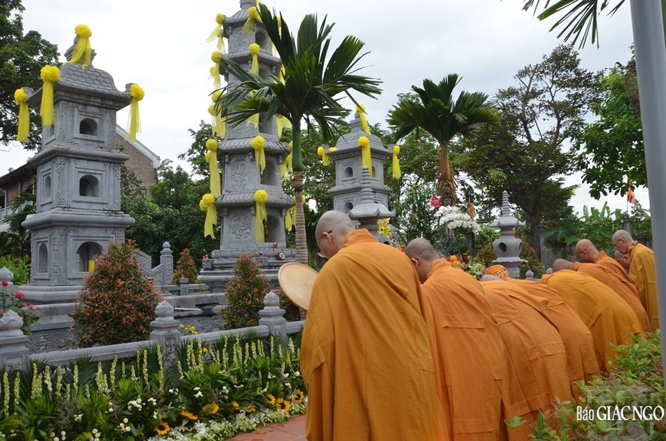 Sau lễ cung tiến Giác linh, Hòa thượng sám chủ cùng chư tôn đức Ban Nghi lễ đã vân tập trước bảo tháp đảnh lễ và nhiễu tháp để tưởng niệm công đức của bậc thạch trụ thiền gia.