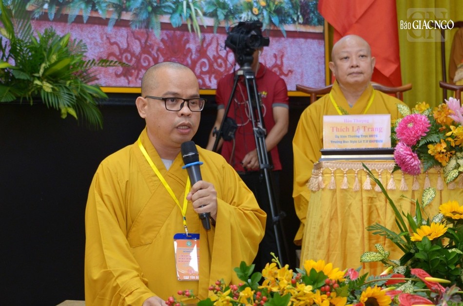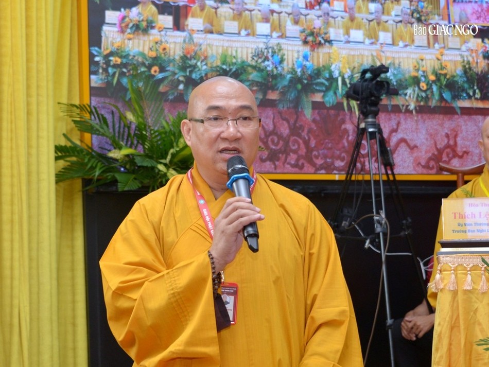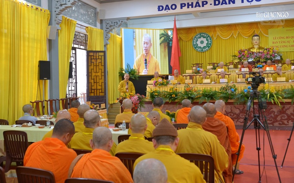 Thượng tọa Thích Thanh Tuấn, Phó Tổng Thư ký Hội đồng Trị sự kiêm Chánh Văn phòng I công bố nhân sự ban Tăng sự T.Ư