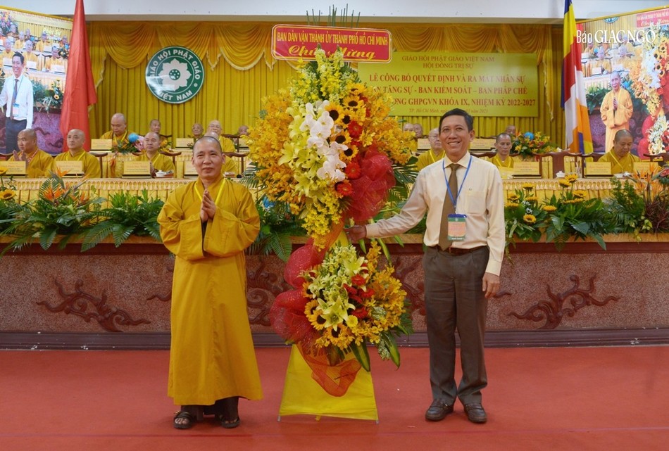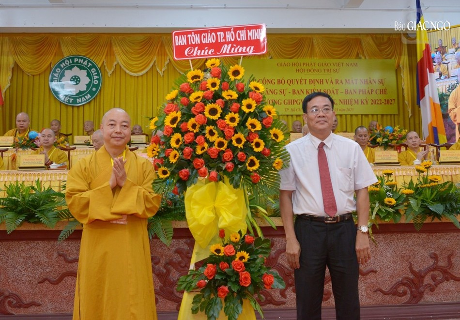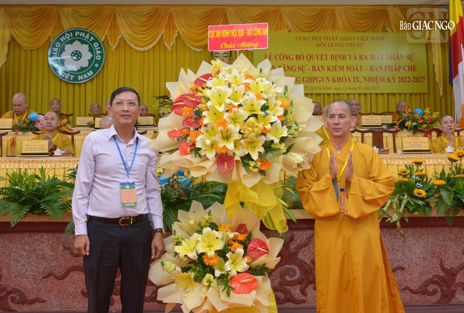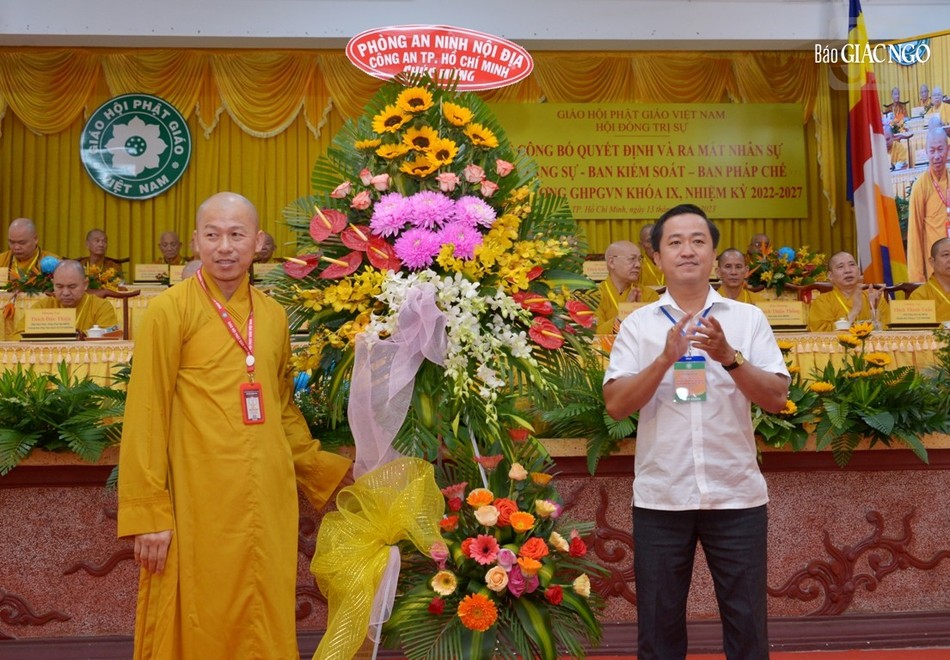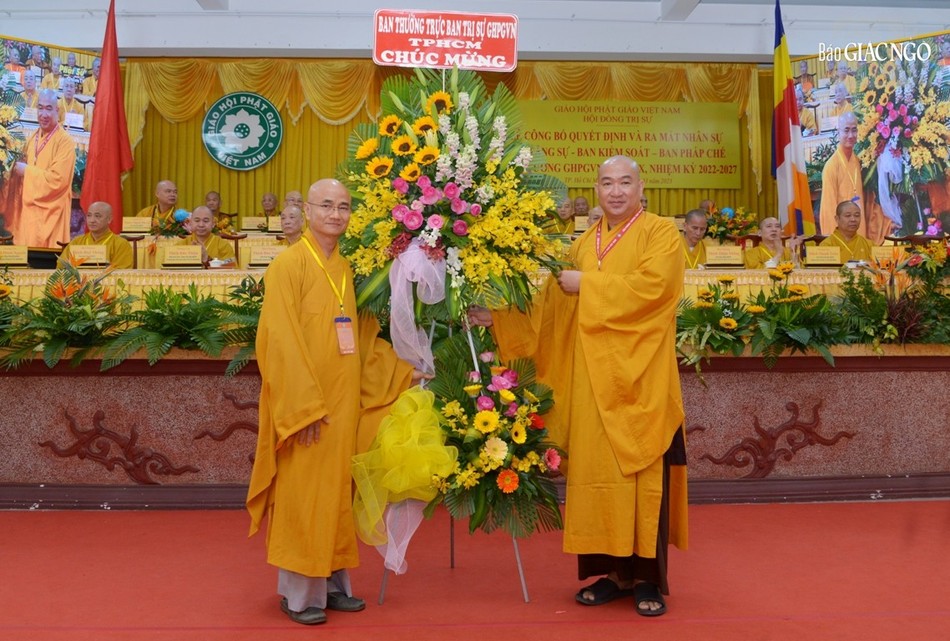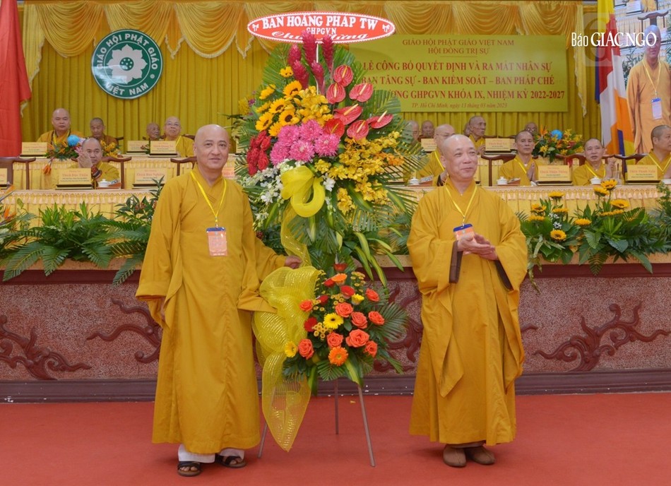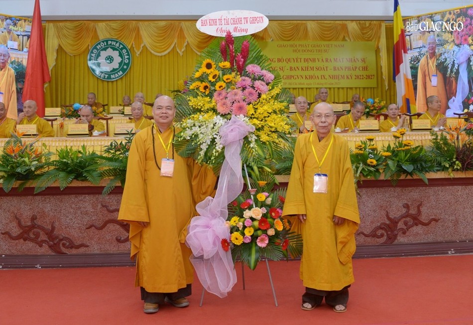 Dịp này, hội nghị cũng đã đón nhận lẵng hoa chúc mừng của Đức Pháp chủ GHPGVN; chư tôn đức lãnh đạo Giáo hội, các Ban, Viện T.Ư cùng như của các cơ quan chính quyền gởi đến chúc mừng.
