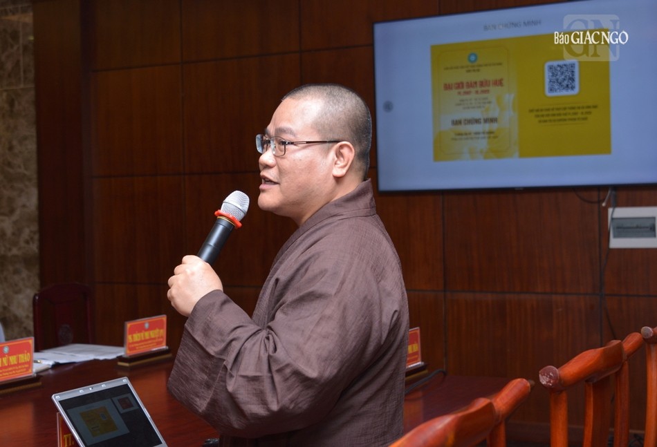Tại buổi họp, với trách nhiệm được giao, Thượng tọa Thích Quang Thạnh, Phó ban Trị sự kiêm Trưởng ban Giáo dục Phật giáo TP.HCM, Phó Chủ đàn báo cáo công tác tổ chức và kết quả kỳ khảo hạch của giới tử Đại giới đàn Bửu Huệ.