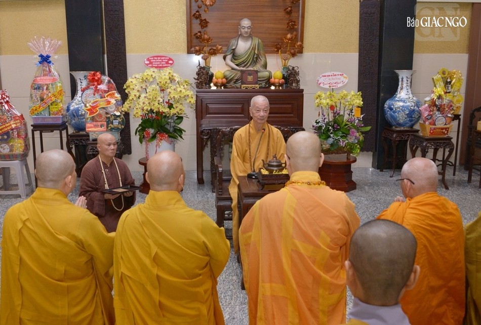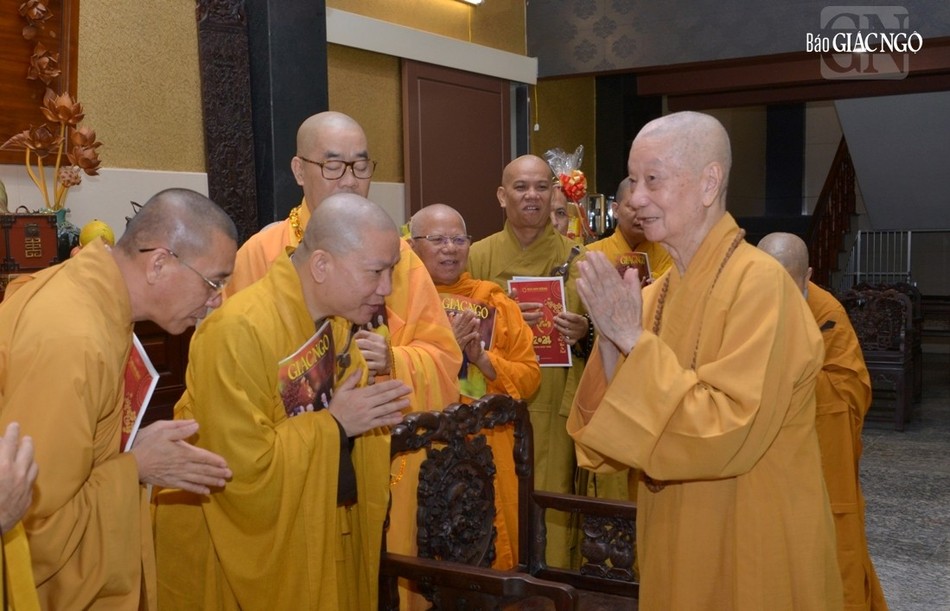 GNO - Sáng nay, 29-1, trước thềm xuân Giáp Thìn, các phái đoàn Ban Trị sự GHPGVN tỉnh Bà Rịa - Vũng Tàu, Bình Dương, Đồng Nai, Hậu Giang, Tiền Giang, Long An, Đồng Tháp… đã đến chùa Huê Nghiêm - TP.Thủ Đức (TP.HCM) khánh tuế Đức Pháp chủ GHPGVN - Đại lão Hòa thượng Thích Trí Quảng.