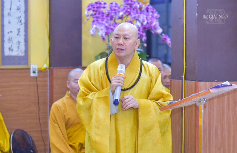 Buổi lễ khai giảng khóa An cư kiết hạ Phật lịch 2568 của Ban Trị sự GHPGVN Q.4 kết thúc sau lời phát biểu cảm tạ của Thượng tọa Thích Thị Trụ, Phó Thường trực Ban Trị sự.