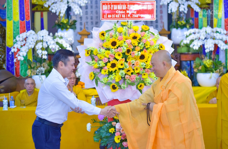 Chứng minh, tham dự có Hòa thượng Thích Nhựt Hiển, Chứng minh Ban Trị sự Phật giáo Q.4; Hòa thượng Thích Hạnh Ngộ, Ủy viên Thường trực Ban Trị sự GHPGVN TP.HCM, Chứng minh Ban Trị sự Phật giáo Q.4; Thượng tọa Thích Minh Bảo, Trưởng ban Trị sự Phật giáo Q.4, Trưởng ban Tổ chức; chư vị trong Chứng minh, Ban Trị sự GHPGVN Q.4; Tăng Ni, Phật tử trên địa bàn quận.