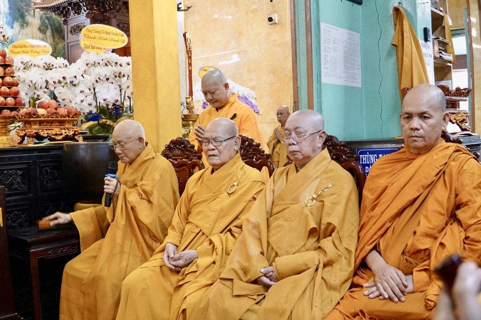 Ban Chức sự hạ trường cung thỉnh Trưởng lão Hòa thượng Thích Minh Thông giáo giới và sách tấn chư vị hành giả an cư và chư Tăng trụ trì các tự viện trên địa bàn Q.6.