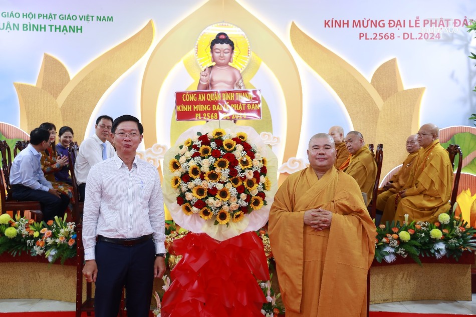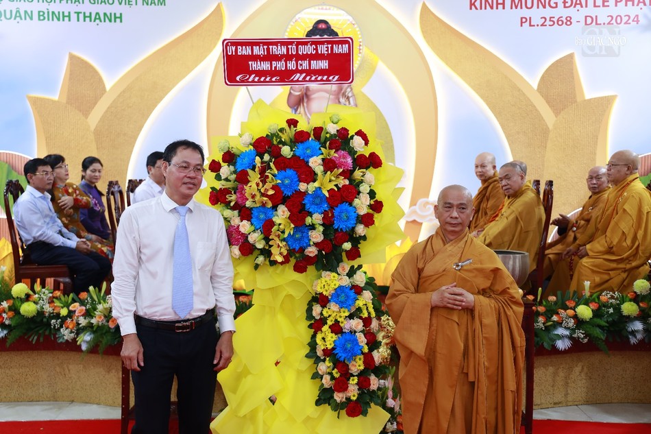 Tại buổi lễ, Chủ tịch Ủy ban MTTQVN Q.Bình Thạnh Nguyễn Thu Hương, đại diện chính quyền quận có lời chúc mừng đến toàn thể Tăng Ni, Phật tử tín đồ trên địa bàn và mong Ban Trị sự tiếp tục phát huy tinh thần hộ quốc an dân, chung tay cùng chính quyền, chăm lo đời sống cho người dân địa phương.