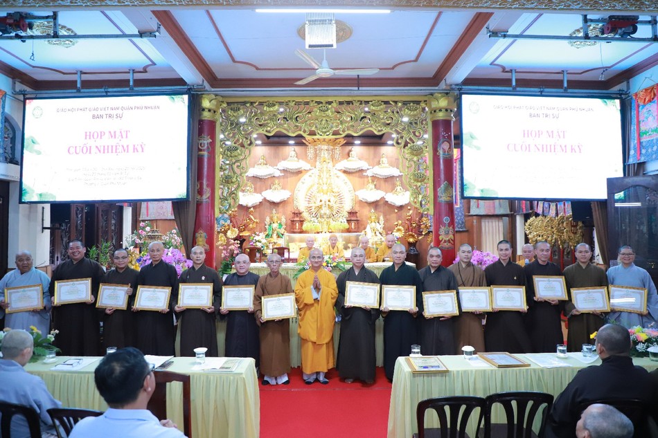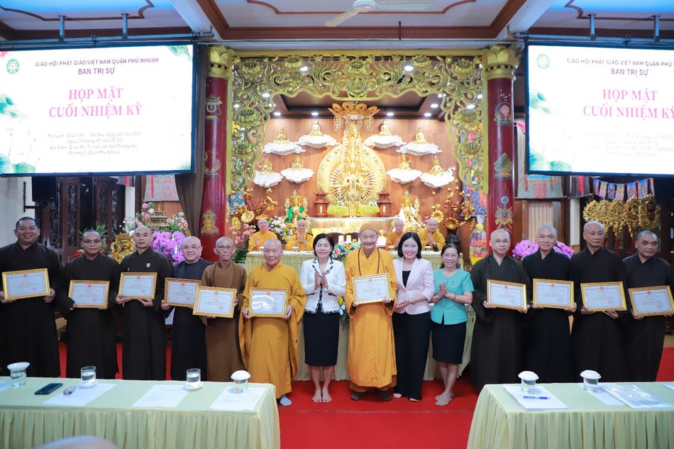 Dịp này, Ban Trị sự GHPGVN TP.HCM đã tặng Bằng tuyên dương công đức, Ủy ban MTTQVN TP.HCM tặng Bằng khen, UBND Q.Phú Nhuận tặng Giấy khen đến tập thể, cá nhân tại Q.Phú Nhuận có thành tích thực hiện tốt việc học tập và làm theo tư tưởng, đạo đức, phong cách Hồ Chí Minh cũng như hoàn thành xuất sắc công tác Phật sự, tham gia phong trào từ thiện xã hội, nhiệm kỳ 2021-2026.