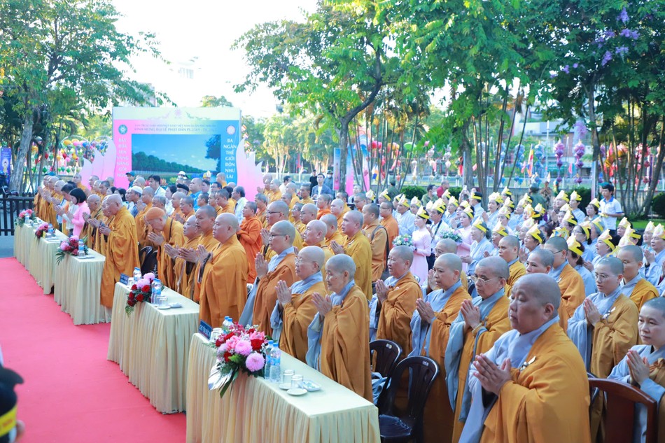 Sau nghi thức chào cờ, cử Quốc ca, Đạo ca, nhập từ bi quán và tiết mục múa dâng hoa cúng dường Phật đản của Phật tử đạo tràng Quan Âm tu viện, toàn thể đại chúng đồng lắng nghe Trưởng lão Hòa thượng Thích Như Niệm tuyên đọc Thông điệp Đại lễ Phật đản Phật lịch 2569 của Đức Pháp chủ GHPGVN gửi đến toàn thể Tăng Ni, Phật tử Việt Nam trong và ngoài nước.