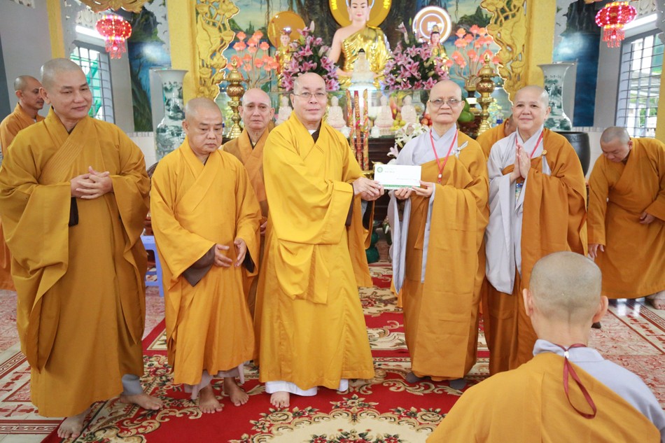Dịp này, chư tôn đức Ban Trị sự GHPGVN Q.Tân Bình cũng đã trao cúng dường tịnh tài, phẩm vật đến các hạ trường nhằm giúp chư hành giả an tâm tu học trong 3 tháng an cư kiết hạ.