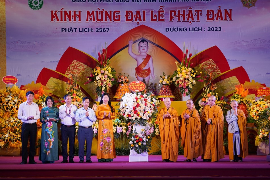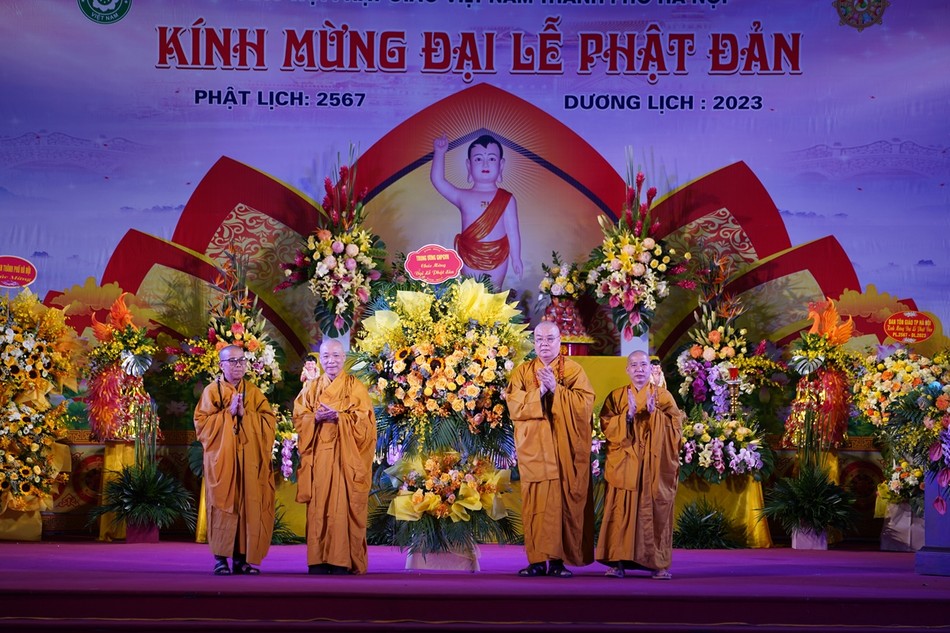 Tại buổi lễ, Ban Trị sự GHPGVN TP.Hà Nội cũng đã đón nhận những lẵng hoa chúc mừng của T.ƯGH, lãnh đạo chính quyền các cấp gửi đến chúc mừng Phật đản.