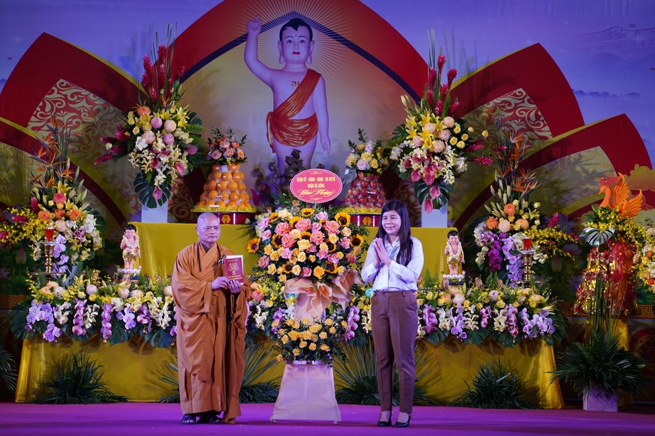 Thay mặt cho lãnh đạo chính quyền các cấp, bà Nguyễn Lan Hương đã gửi lời chúc mừng đến toàn thể chư tôn đức lãnh đạo Giáo hội, Tăng Ni, cư sĩ Phật tử đón một mùa Phật đản an vui, hạnh phúc. Qua đây, bà đánh giá cao vao trò của GHPGVN đã có nhiều hoạt động, đóng góp tích cực vào công cuộc xây dựng và phát triển đất nước làm lợi đạo ích đời, đạt kết quả tốt trong các hoạt động an sinh xã hội, xóa đói giảm nghèo, góp phần xây dựng đất nước giàu mạnh văn minh.