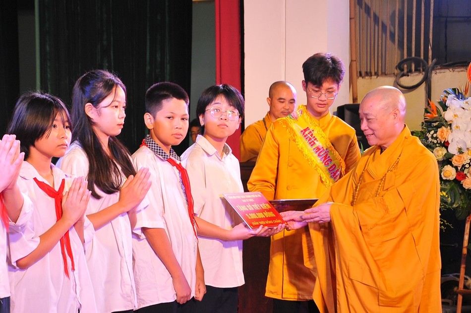 Nhân dịp này, Ban Trị sự Phật giáo TP cũng đã trao quà từ thiện cho 30 em học sinh hiếu học có thành tích học tập xuất sắc trên địa bàn thành phố. Mỗi phần quà trị giá 5 triệu đồng, nhằm khích lệ các em cố gắng học tập hơn nữa để trở thành những công dân Thủ đô gương mẫu, sống có ích cho xã hội.