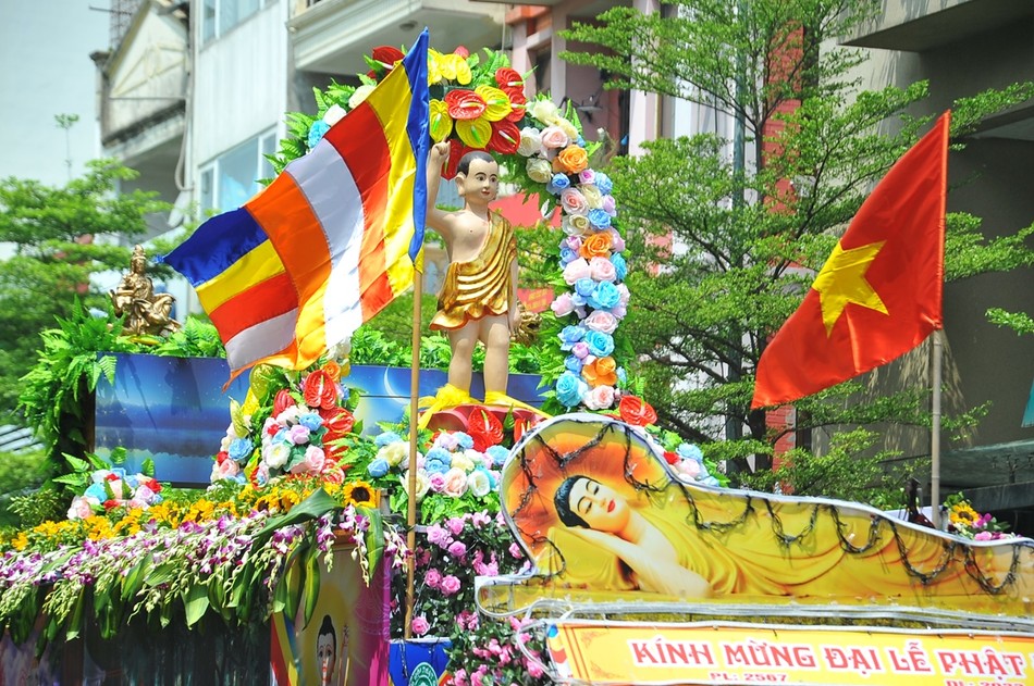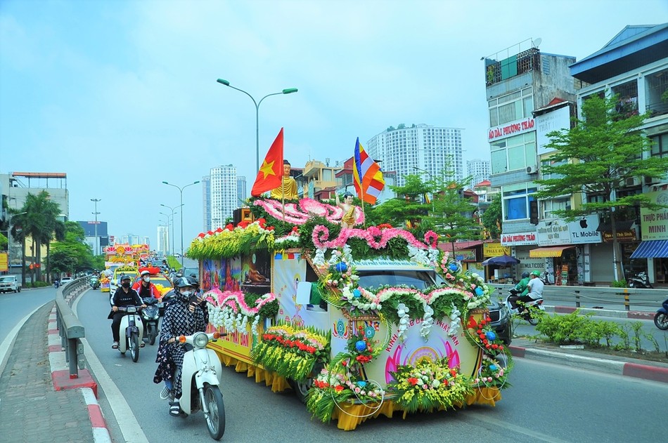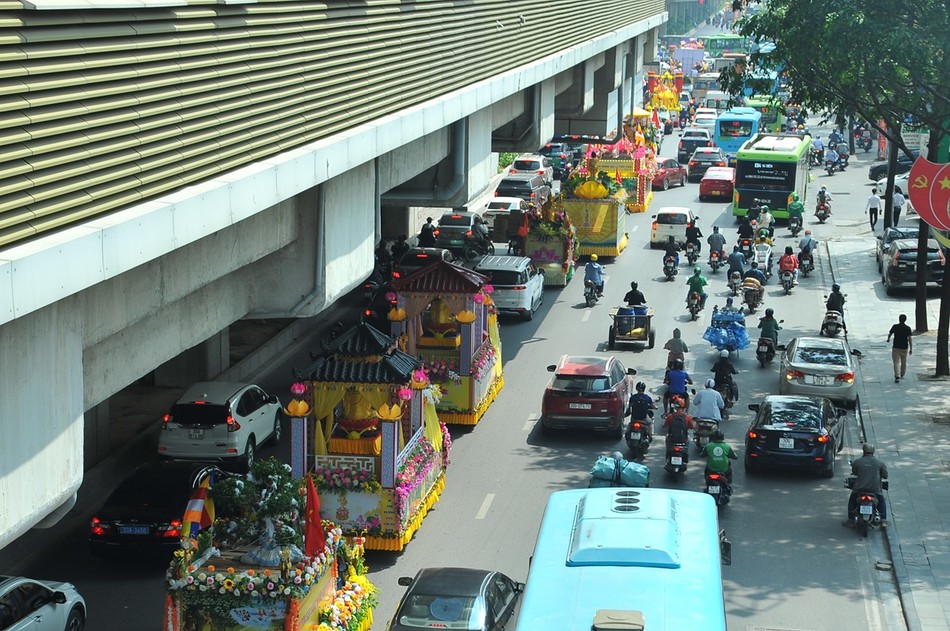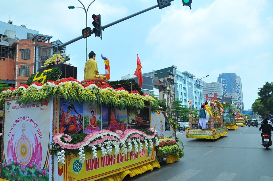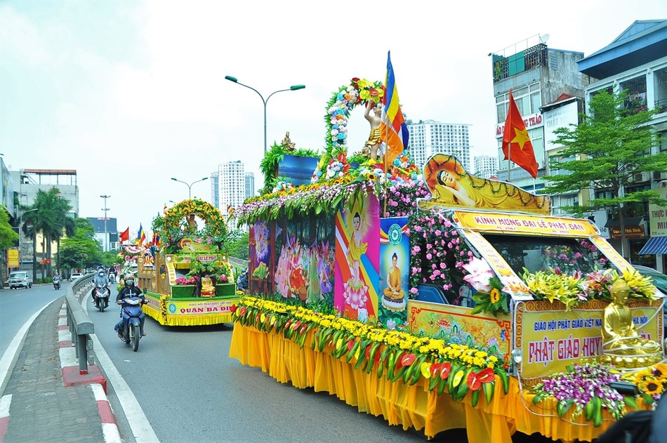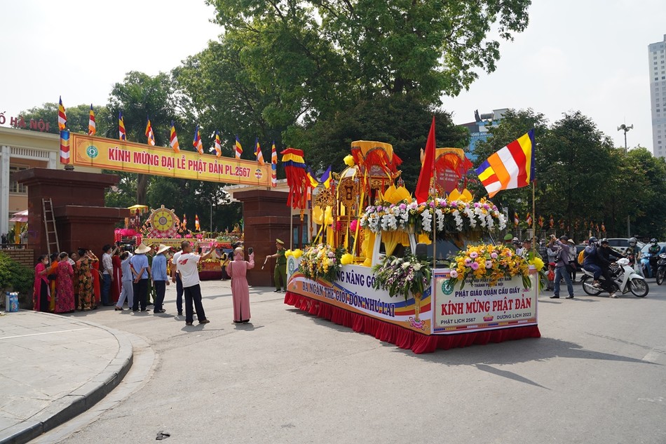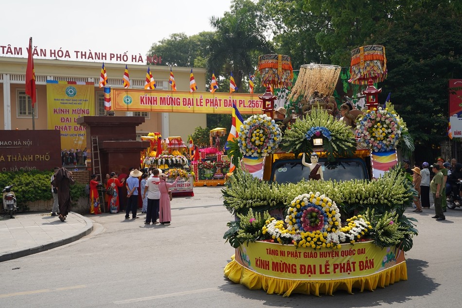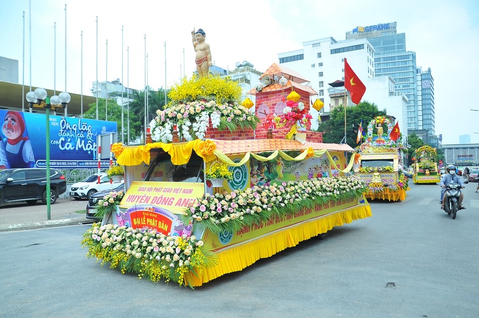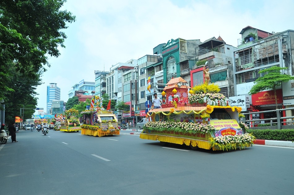 Sau khi kết thúc chương trình, các xe hoa đại diện cho 30 đơn vị Phật giáo quận, huyện, thị xã đã diễu hành lên trụ sở T.ƯGH - chùa Quán Sứ để chuẩn bị cho chương trình Đại lễ Phật đản chính thức của TƯGH diễn ra vào sáng nay 15-4 ÂL.