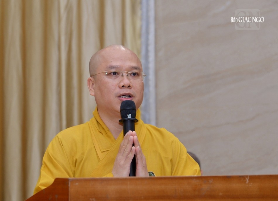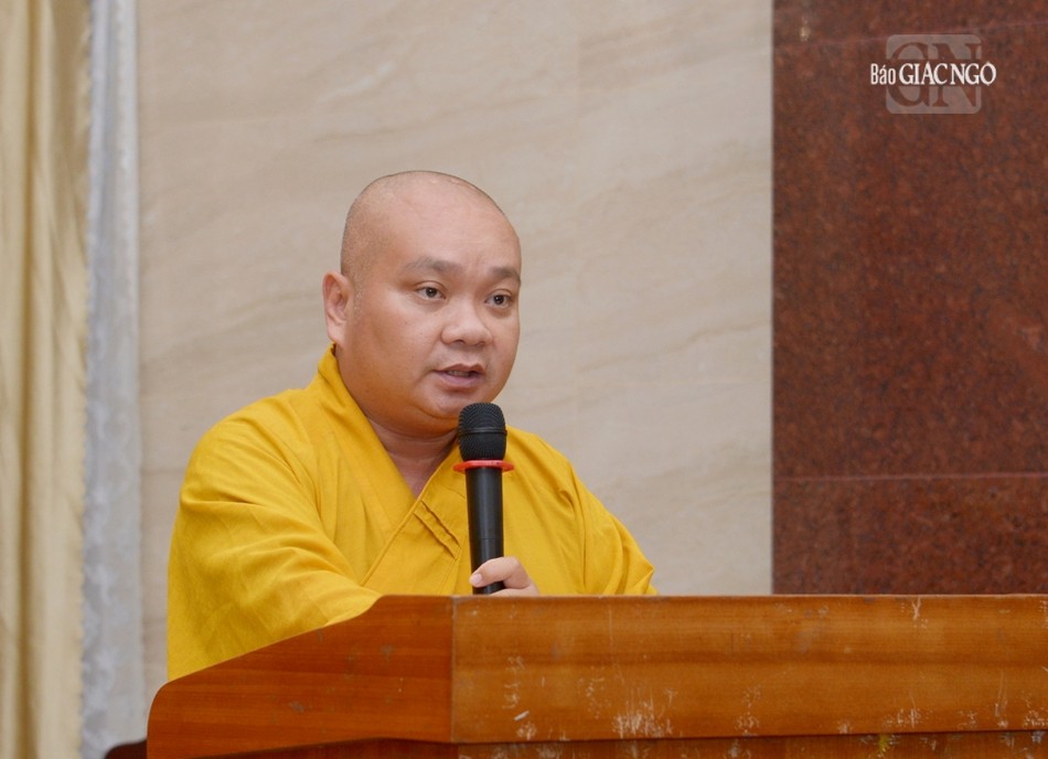 Thượng tọa Thích Thiện Quý, Phó Trưởng ban kiêm Chánh Thư ký Ban Trị sự GHPGVN TP.HCM trình kế hoạch tuần huân tu, dự kiến tổ chức vào tháng 12-2023 |