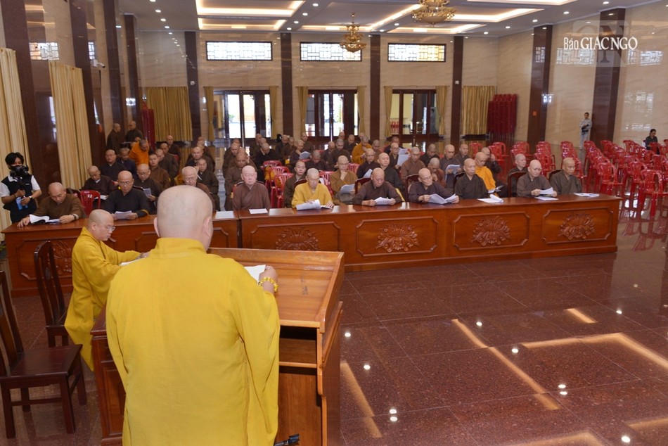 Hòa thượng Thích Lệ Trang, Trưởng ban Trị sự GHPGVN TP.HCM chủ trì buổi họp, cùng sự tham dự của chư tôn đức Ban Thường trực; Thường trực các ban chuyên môn trực thuộc, Phân ban Ni giới TP.HCM, Ban Trị sự TP.Thủ Đức, 21 quận huyện.