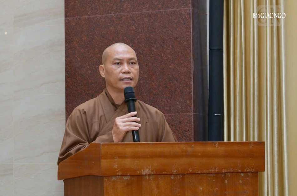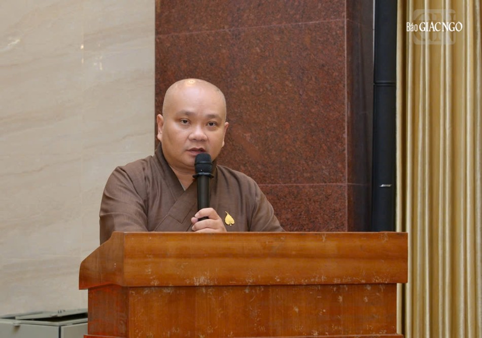Thượng tọa Thích Thiện Quý báo cáo một số việc tại buổi họp |