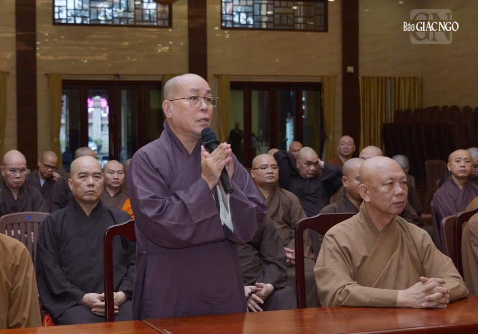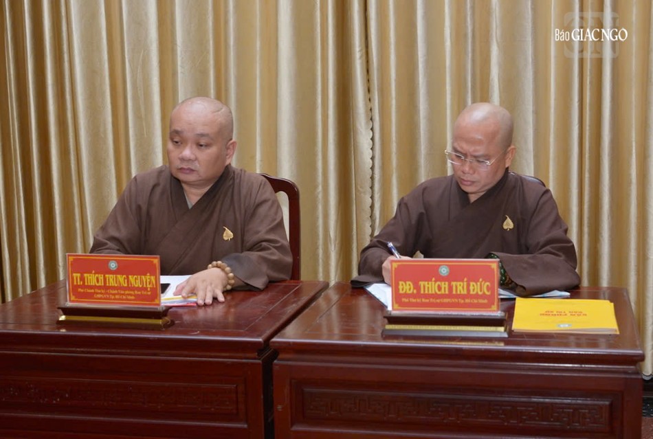Hòa thượng Thích Lệ Trang, Trưởng ban Trị sự GHPGVN TP.HCM chủ trì buổi họp, cùng sự tham dự của chư tôn đức Ban Thường trực; Thường trực các ban chuyên môn trực thuộc, Phân ban Ni giới TP.HCM, Ban Trị sự TP.Thủ Đức, 21 quận huyện.