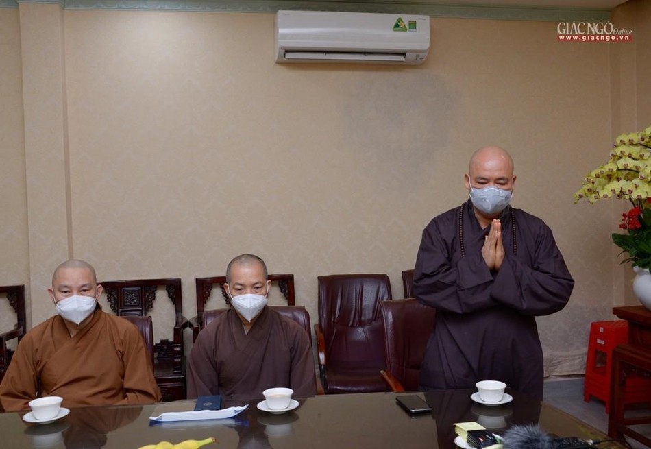 “Chúng con rất xúc động khi được Trưởng lão Hòa thượng Đệ nhất Phó Pháp chủ, Trưởng ban Trị sự GHPGVN TP.HCM quan tâm, cử đoàn đến thăm và động viên chư Tăng, Phật tử đang làm việc tại điểm chùa Vĩnh Nghiêm. Những việc chúng con làm đều cố gắng trong tinh thần từ bi của người con Phật, góp phần nào cùng Đảng, chính quyền và ngành y tế sớm kiểm soát được dịch, để người dân bớt khổ, cuộc sống sớm trở lại bình thường”, Thượng tọa Thích Thanh Phong bày tỏ.
