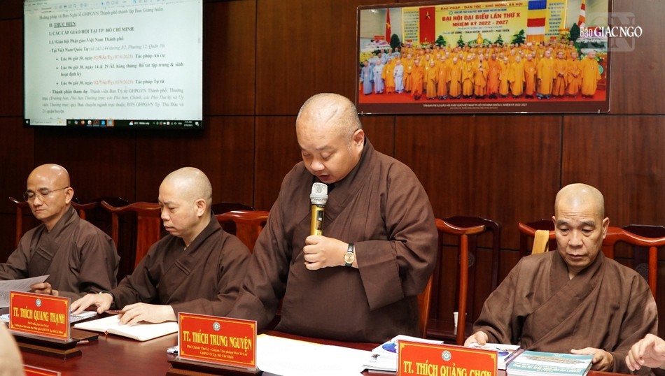 Sau khi nghe chư tôn đức Trưởng các ban chuyên môn, thành viên Ban Thường trực Ban Trị sự đóng góp các ý kiến về các hoạt động trọng tâm của GHPGVN TP.HCM; đề xuất các kế hoạch hoạt động về thiết trí lễ đài, hoằng pháp, nghi lễ, văn hóa, truyền thông, kinh tế - tài chính... nhằm xây dựng hoàn thiện kế hoạch tổng thể, bảo đảm Đại lễ được diễn ra một cách trang nghiêm, tốt đẹp.