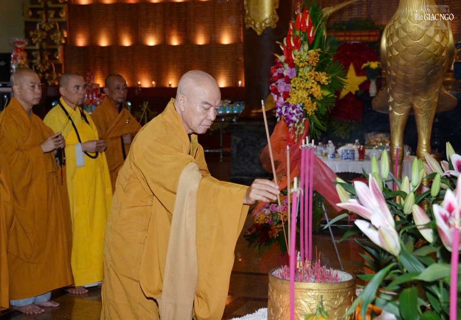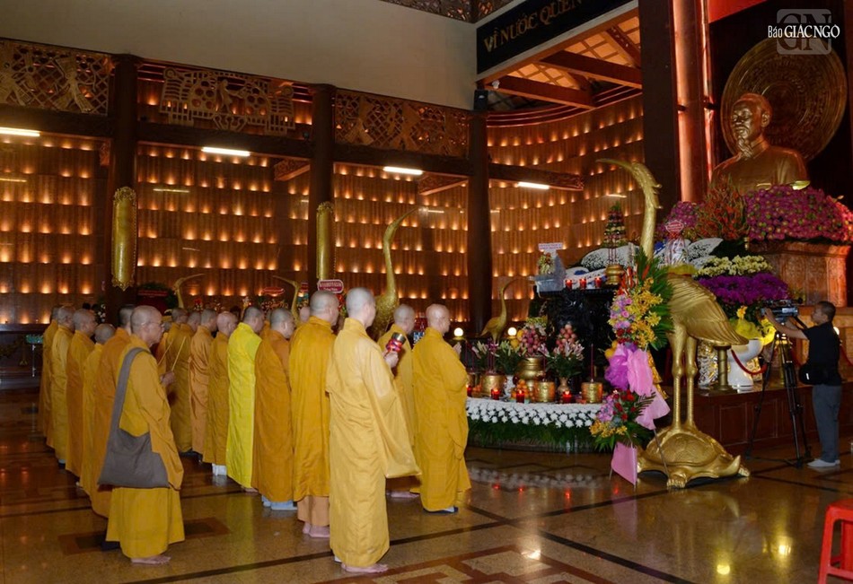 Trong không khí trang nghiêm, thành kính, Thượng tọa Thích Quảng Chơn, Phó Thường trực Ban Nghi lễ T.Ư, Trưởng ban Nghi lễ GHPGVN TP.HCM xướng lễ tưởng niệm; chư tôn giáo phẩm dâng hương, dâng hoa, đồng tụng thời kinh cầu nguyện anh linh các anh hùng liệt sĩ, chiến sĩ cách mạng và đồng bào yêu nước đã hy sinh trong qua các thời kỳ, để bảo vệ nền độc lập, tự do của đất nước như ngày hôm nay.