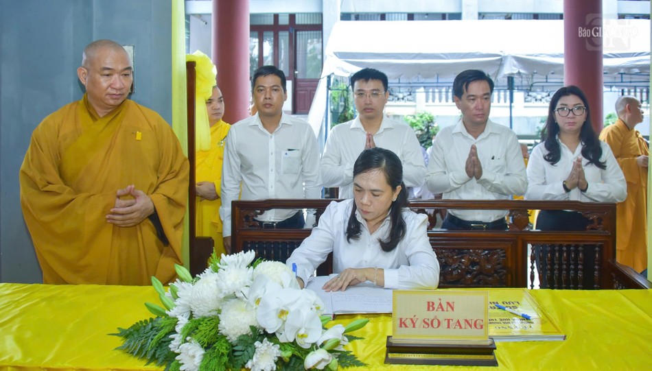 Đại diện Viện Nghiên cứu Phật học VN và Học viện Phật giáo VN tại TP.HCM ký sổ tang |