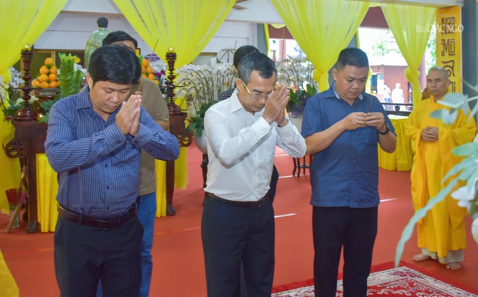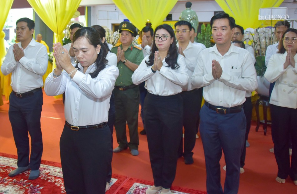 Theo đó, chư tôn đức Ban Nghi lễ T.Ư, Ban Thường trực Ban Trị sự TP.HCM, các ban trực thuộc GHPGVN TP.HCM, Ban Trị sự TP.Thủ Đức và các quận huyện, Ban Đại diện Phật giáo người Hoa TP.HCM, Tăng Ni các tự viện, Phân ban Ni giới TP.HCM do Hòa thượng Thích Lệ Trang, Trưởng ban Nghi lễ T.Ư, Trưởng ban Trị sự GHPGVN TP.HCM làm trưởng đoàn.
