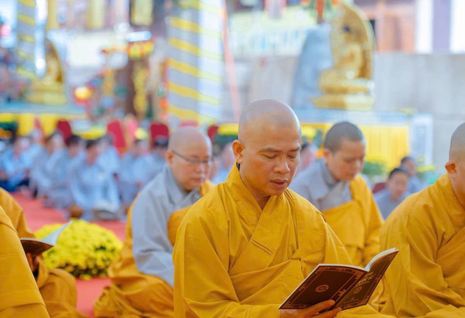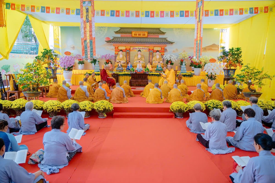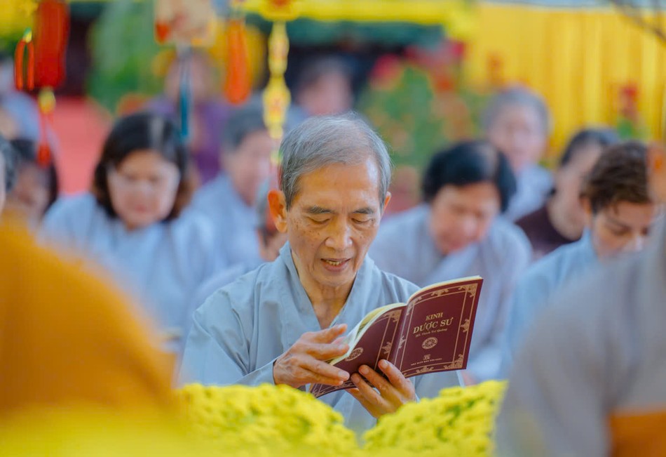 Trong không khí trang nghiêm, toàn thể đạo tràng đã nhất tâm trì tụng kinh Dược Sư, hồi hướng công đức, cùng nhau cầu nguyện cho quốc thái dân an, phong điều vũ thuận.