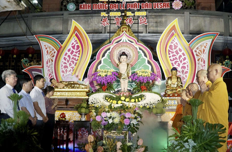Hơn 200 Phật tử tham dự Đại lễ Phật đản Phật lịch 2569 tại chùa Vạn Phật, Q.5 vào chiều 10-4-Ất Tỵ |