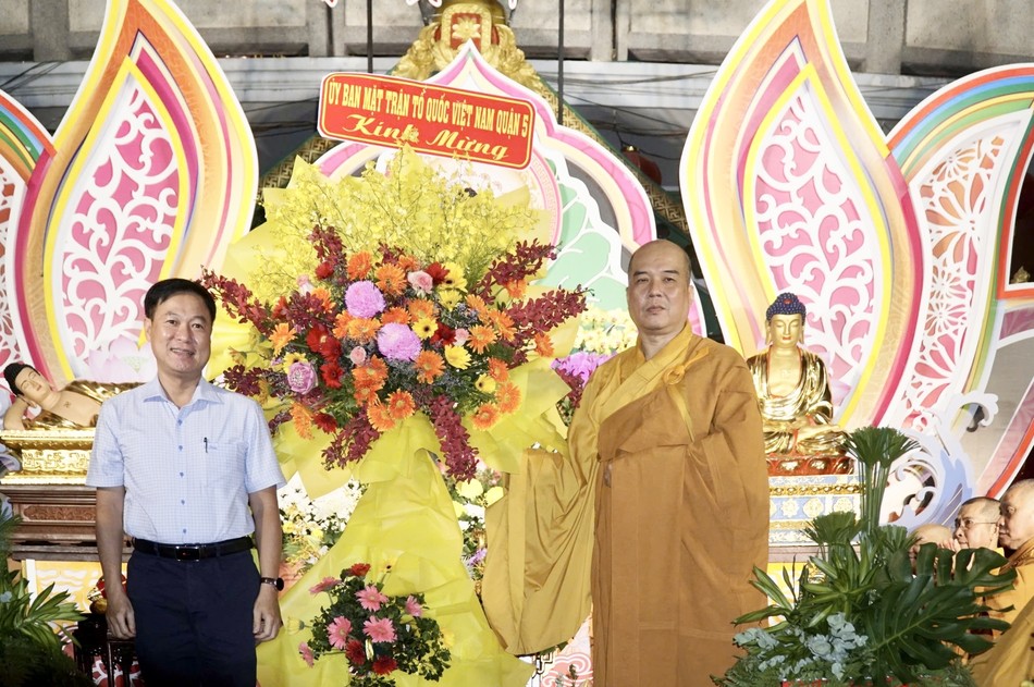 Chứng minh, tham dự có Hòa thượng Thích Huệ Công, Phó ban Trị sự GHPGVN TP.HCM, Trưởng ban Đại diện Phật giáo người Hoa TP.HCM; Thượng tọa Thích Truyền Cường, Trưởng ban Trị sự Phật giáo Q.5, Trưởng ban Tổ chức; chư tôn đức Ban Trị sự Phật giáo quận, Tăng Ni và hơn 200 Phật tử.