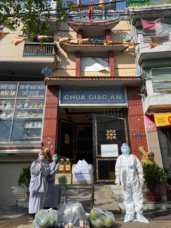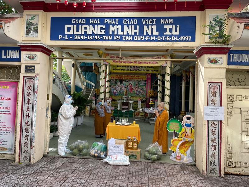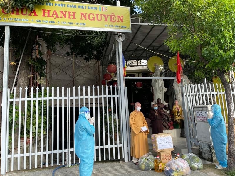 Được biết, trên địa bàn quận Tân Phú có 36 cơ sở tự viện, hơn 200 Tăng Ni đang tu học. Do tình hình dịch bệnh diễn biến phức tạp nên Ban Trị sự Phật giáo quận chỉ dâng cúng dường Tam bảo tại cổng tam quan của các tự viện.