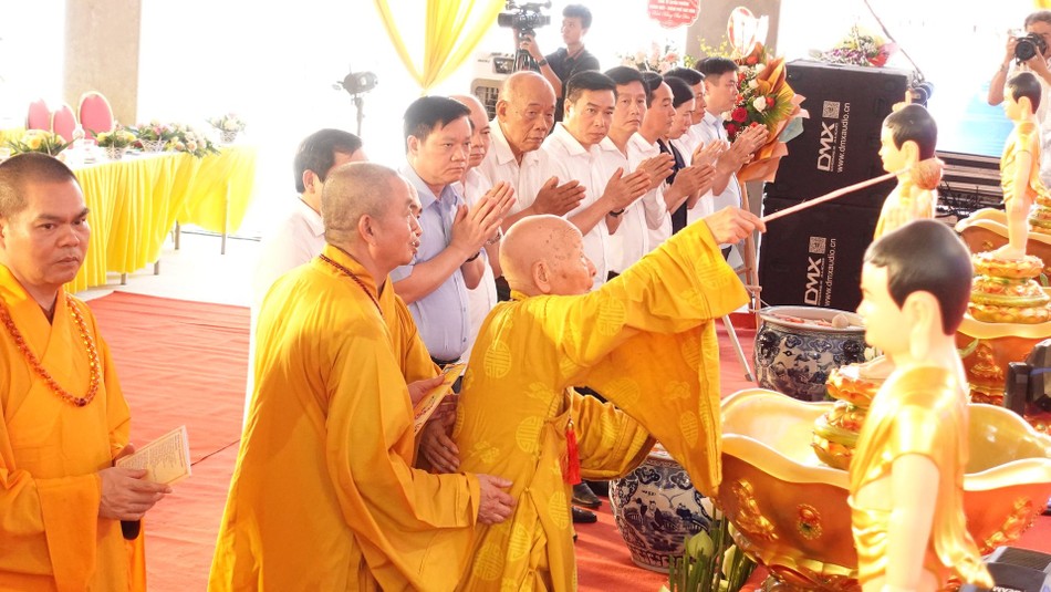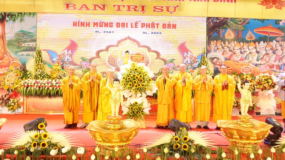 Tại đây, chư tôn giáo phẩm, đại biểu chính quyền các cấp, Phật tử đã tham gia các nghi thức niêm hương, Tắm Phật để cầu cho quốc thái dân an, thế giới hòa bình, đất nước phồn vinh, Phật pháp trường tồn, Tăng-già hưng thịnh.