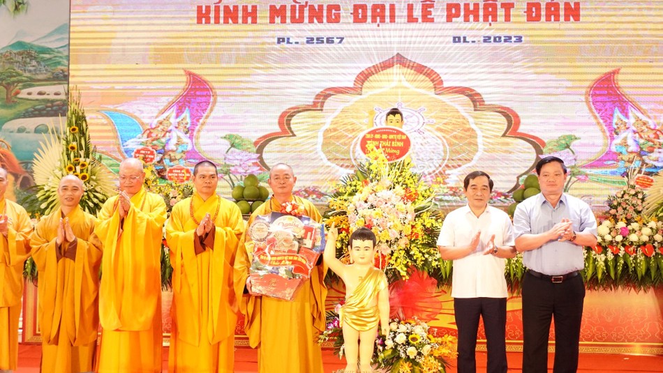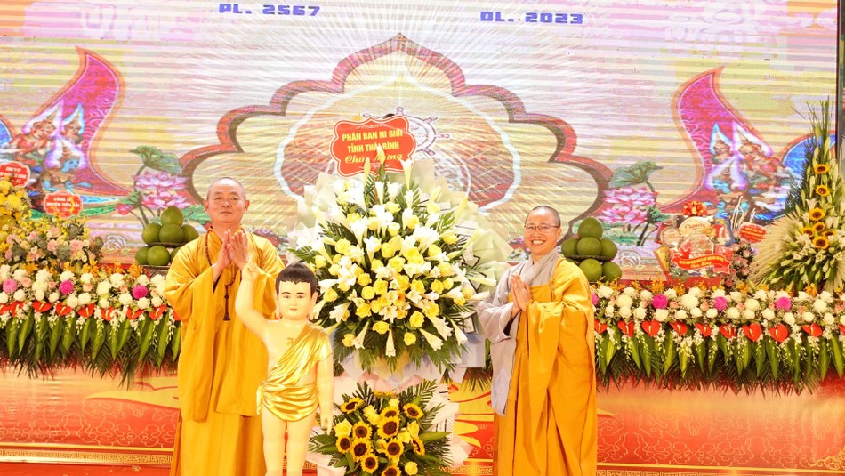 Phát biểu tại buổi lễ, ông Lại Văn Hoàn, Phó Chủ tịch UBND có lời chúc mừng đến Tăng Ni, Phật tử tỉnh Thái Bình mùa Phật đản an vui. Ông Phó Chủ tịch UBND tỉnh cùng bày tỏ sự tin tưởng trong thời gian tới, với trí tuệ và tinh thần đoàn kết của Tăng Ni trong tỉnh, với đường hướng hành đạo gắn bó, đồng hành cùng dân tộc, Phật giáo tỉnh Thái Bình sẽ thực hiện tốt phương châm “Đạo pháp - Dân tộc - Chủ nghĩa xã hội”, góp phần đưa Thái Bình trở thành tỉnh văn minh, hiện đại, phát triển giàu mạnh.