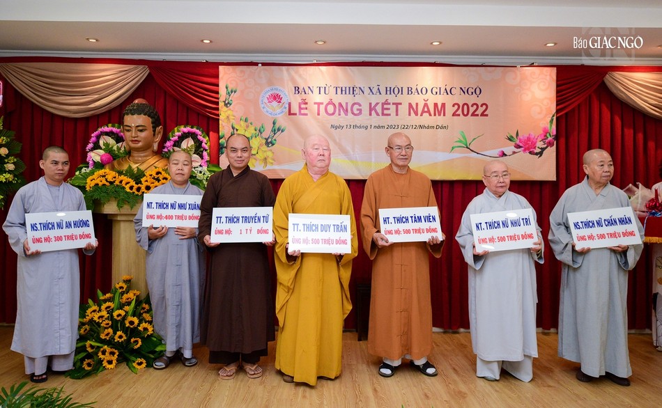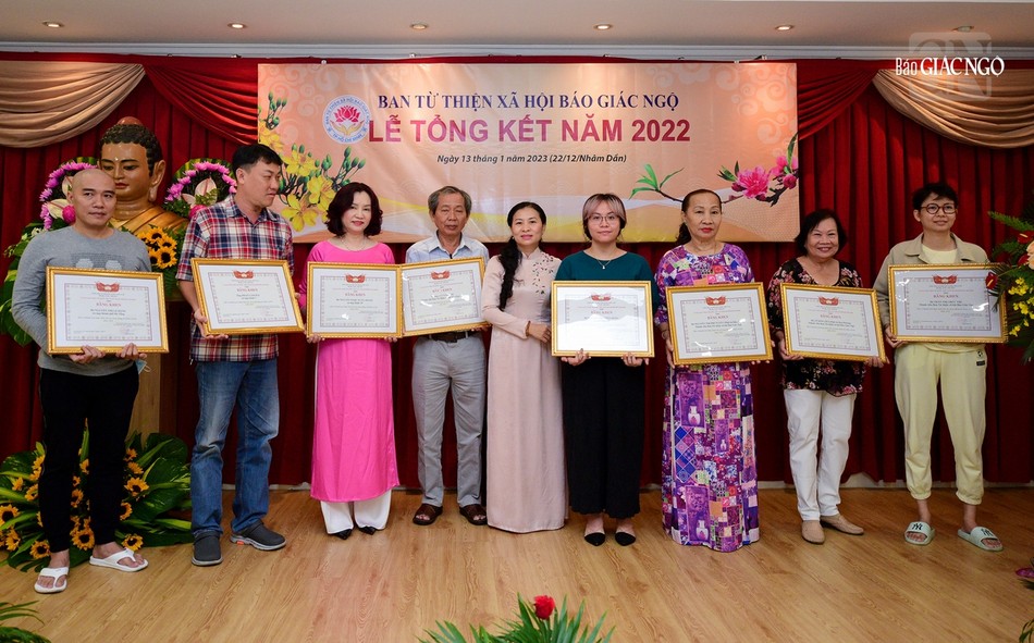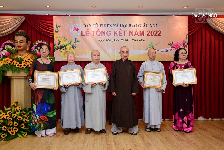 Ghi nhận đóng góp của thành viên Ban Từ thiện - Xã hội báo Giác Ngộ, Tăng Ni các tự viện, các nhà hảo tâm, Ban Trị sự GHPGVN TP.HCM đã trao tặng Bằng tuyên dương công đức đến 1 tập thể và 6 cá nhân, Bằng công đức đến 20 cá nhân; Ủy ban MTTQVN TP.HCM trao tặng Bằng khen đến 2 tập thể và 23 cá nhân; Ban Biên tập báo Giác Ngộ trao Bằng công đức đến 2 tập thể, 52 cá nhân; Ban Từ thiện - Xã hội báo Giác Ngộ trao Bằng công đức đến 29 cá nhân.