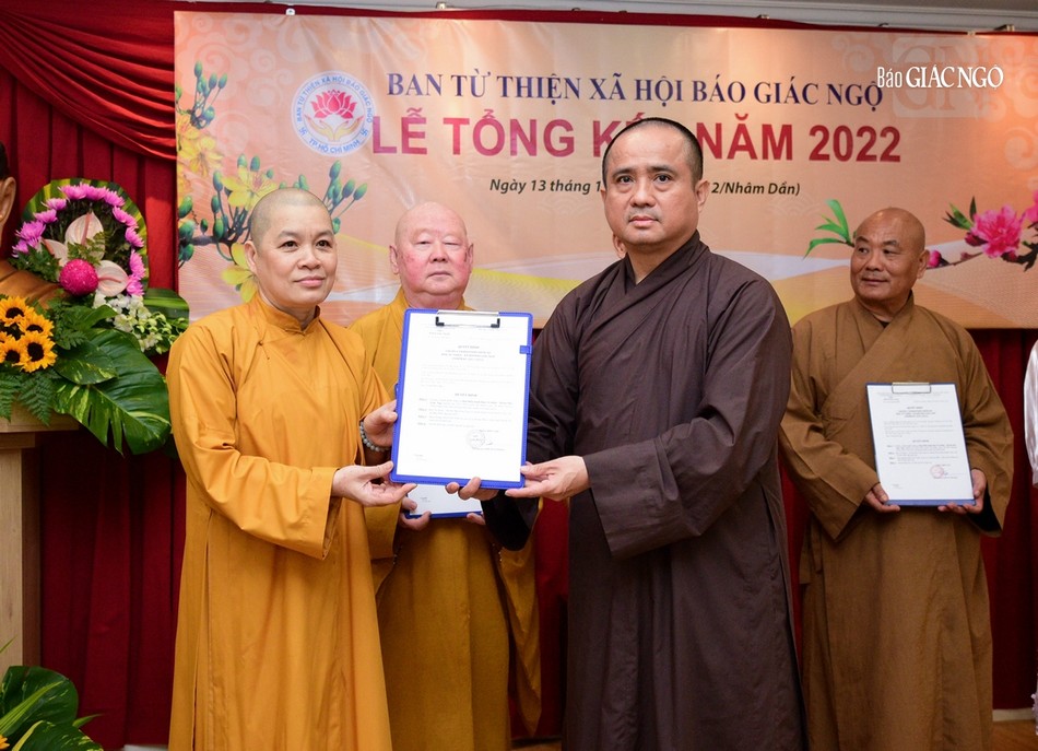 Trao quyết định đến Ban Điều hành Ban Từ thiện - Xã hội báo Giác Ngộ |