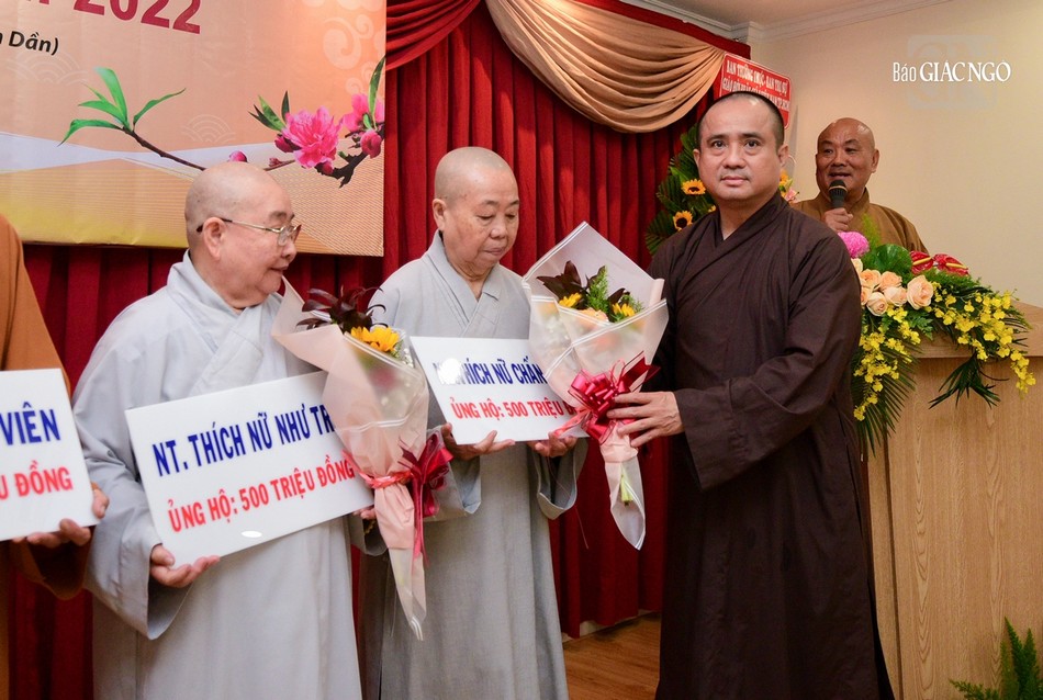 Hiện diện còn có Ni trưởng Thích nữ Như Xuân, Chứng minh Phân ban Ni giới Trung ương và Phân ban Ni giới TP.HCM, các thành viên Ban Từ thiện - Xã hội báo Giác Ngộ, Tăng Ni các tự viện TP.HCM; đại diện các doanh nghiệp, doanh nhân, các nhà hảo tâm...