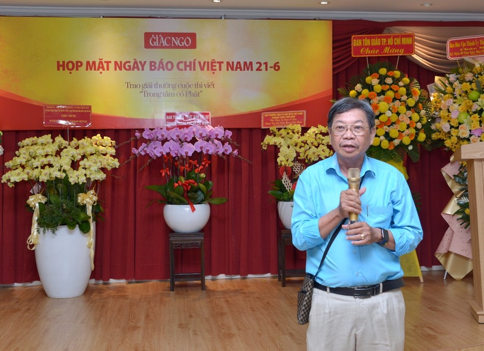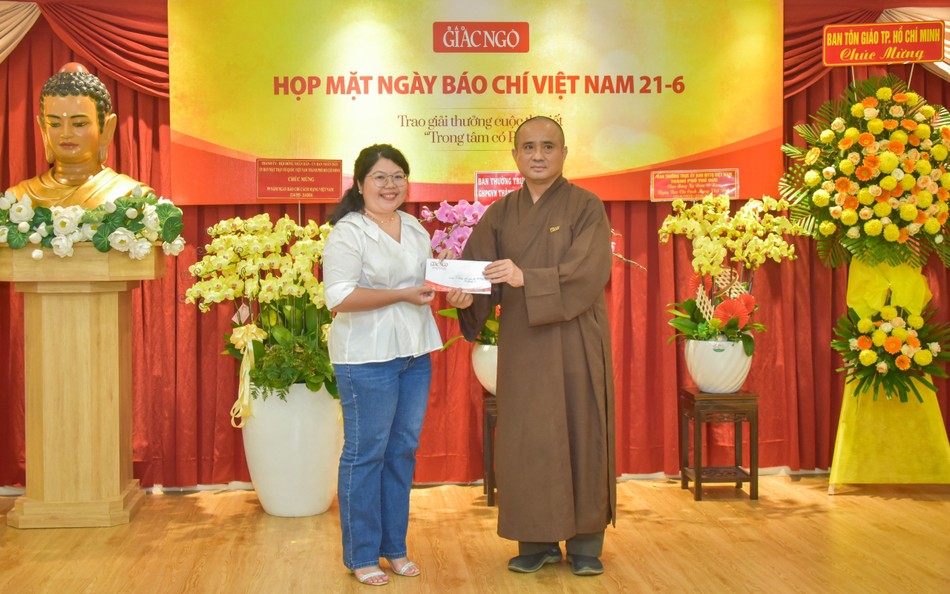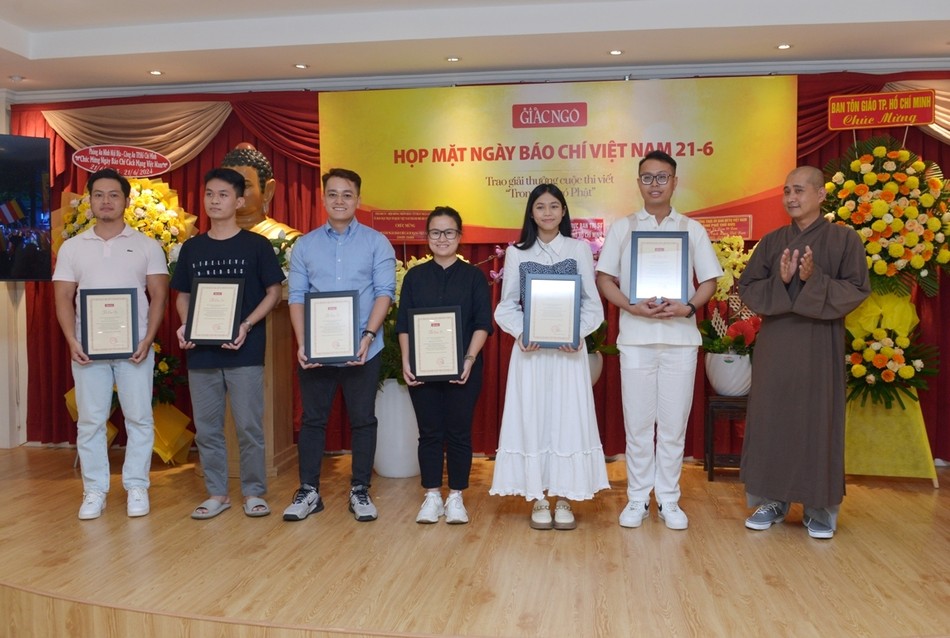 GNO - Chiều nay, 21-6, tại trụ sở tòa soạn Báo Giác Ngộ (Q.3, TP.HCM) đã diễn ra buổi họp mặt thân mật nhân Kỷ niệm 99 năm Ngày Báo chí Cách mạng Việt Nam; đồng thời trao giải cuộc thi viết "Trong tâm có Phật" do Câu lạc bộ Phóng viên - Cộng tác viên báo tổ chức.