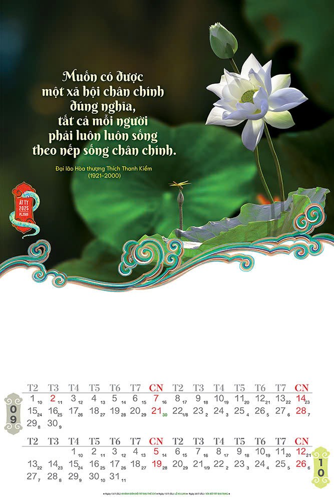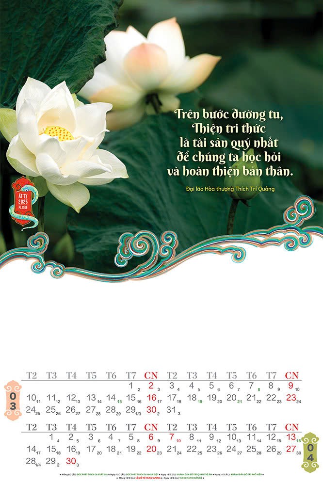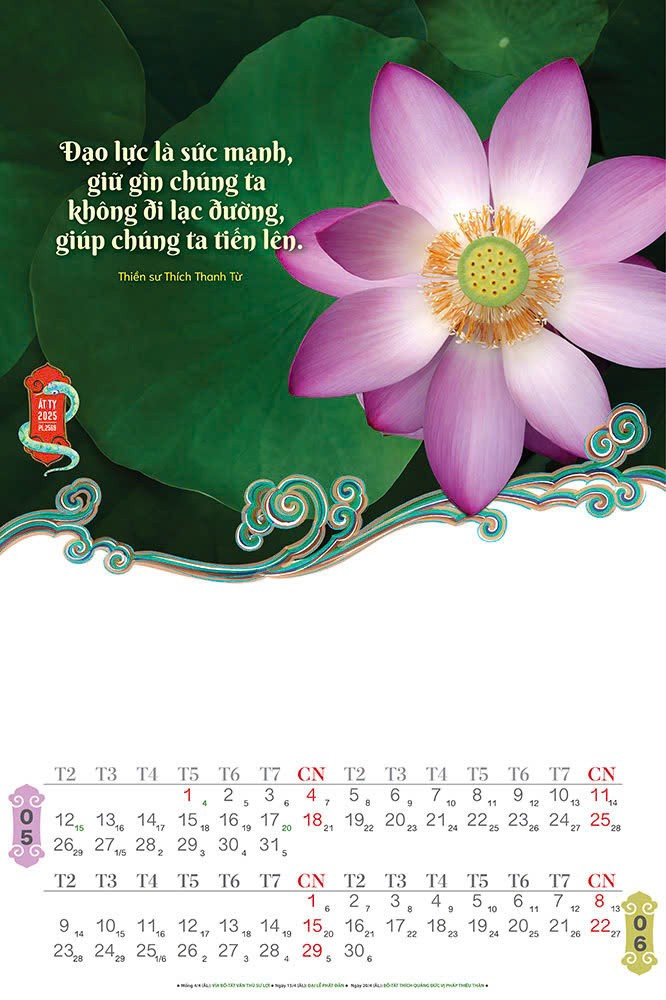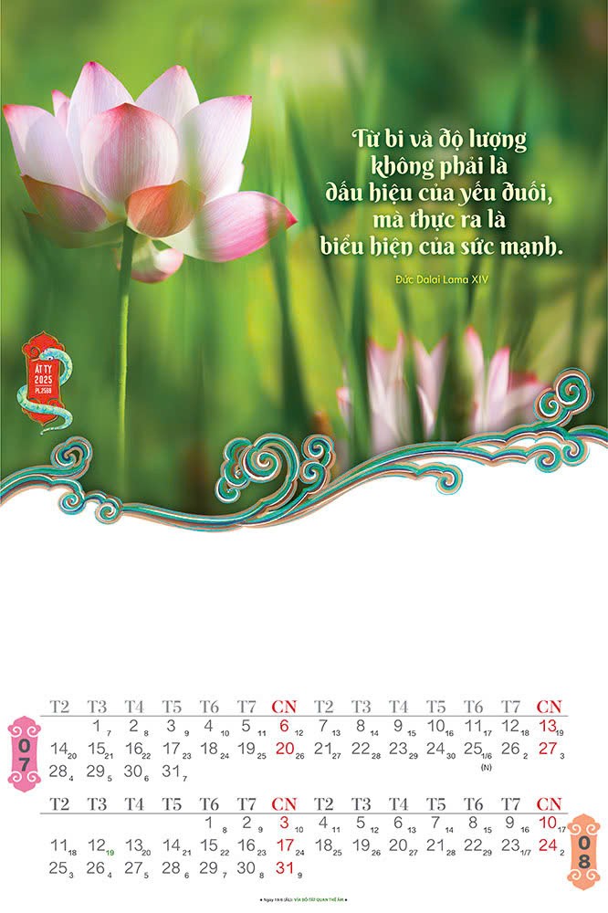 Bộ lịch treo tường 7 tờ (khổ 40x60cm), in trên giấy couché 100gsm do Báo Giác Ngộ phát hành, là món quà tinh thần ý nghĩa để trao tặng trong dịp Xuân về, nhất là đối với các chùa, doanh nghiệp, gia đình Phật tử…