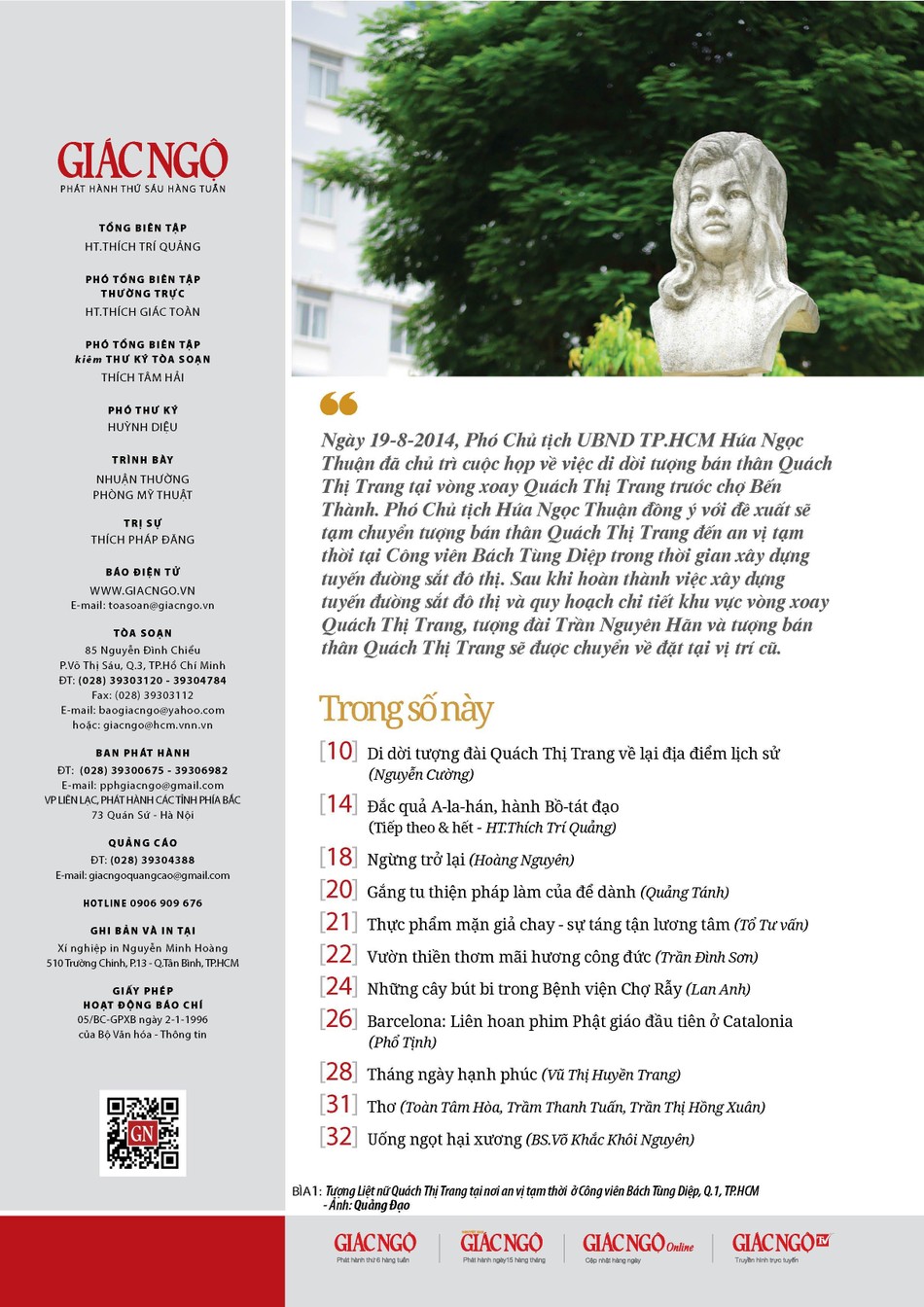 Báo Giác Ngộ số 1159: "Di dời tượng đài Quách Thị Trang về lại địa điểm lịch sử"