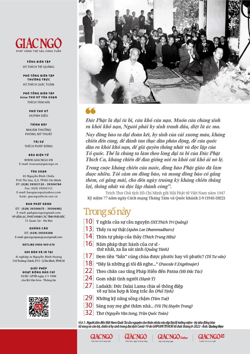 Báo Giác Ngộ số 1167, ra ngày 2-9-2022, trân trọng giới thiệu cùng bạn đọc bài giảng
