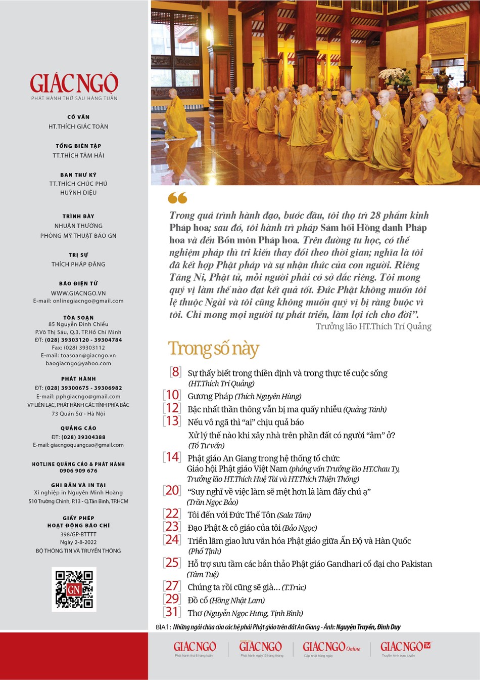 - Chuyên mục Từ những trang kinh: có đăng bài "Bậc nhất thần thông vẫn bị ma quấy nhiễu", tác giả Quảng Tánh.